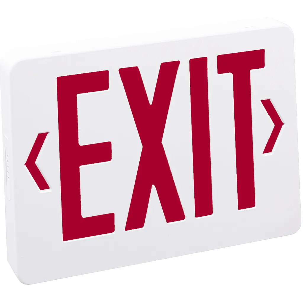 The LED Exit Sign with Battery Backup from Nora Lighting offers safety and long, steady service. Made from injection-molded thermoplastic, the round-cornered rectangular construction features clear lettering and chevron-style arrows across its surface. The LED lamping inside the housing offers a long service life with low maintenance, boosted by a battery backup that ensures that even with a total loss of power, the sign will shine for 90 minutes, lighting the way out.