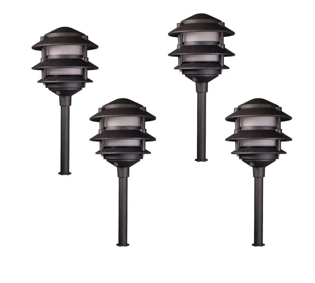 Led Low Voltage 3 Tier Pagoda Landscape Lights- Set Of 4 Rust, Black
