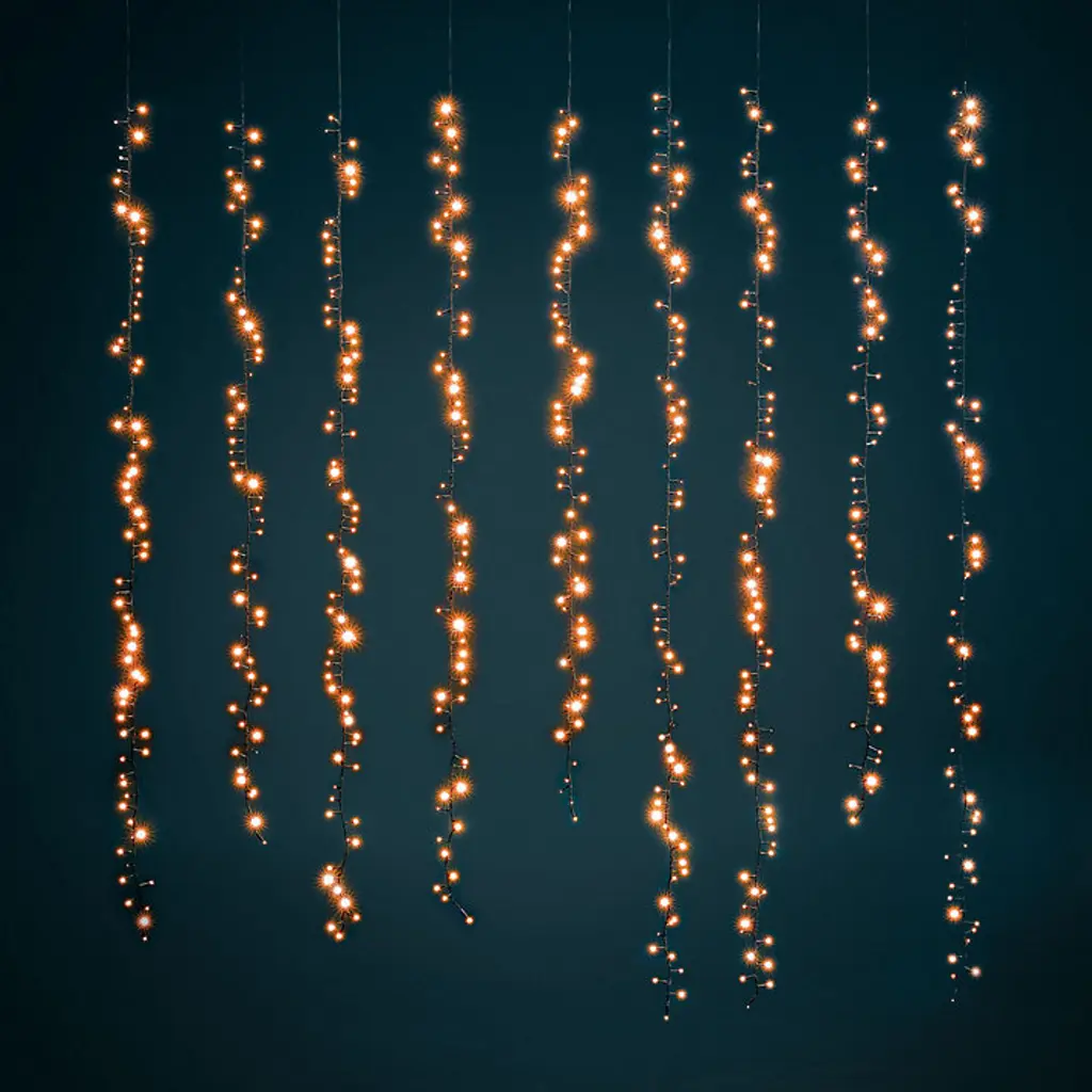 Illuminate your holiday dreamscape in falling stars with our enchanting LED Outdoor Tree Cascade Light Set. Designed to drape from a tree branch, the set of nine light strands includes three different lengths and hundreds of sparkling, champagne-colored LED lights for a magical display. The included 8-hour timer lets conduct the light show. LED Outdoor Tree Cascade Light Set features: