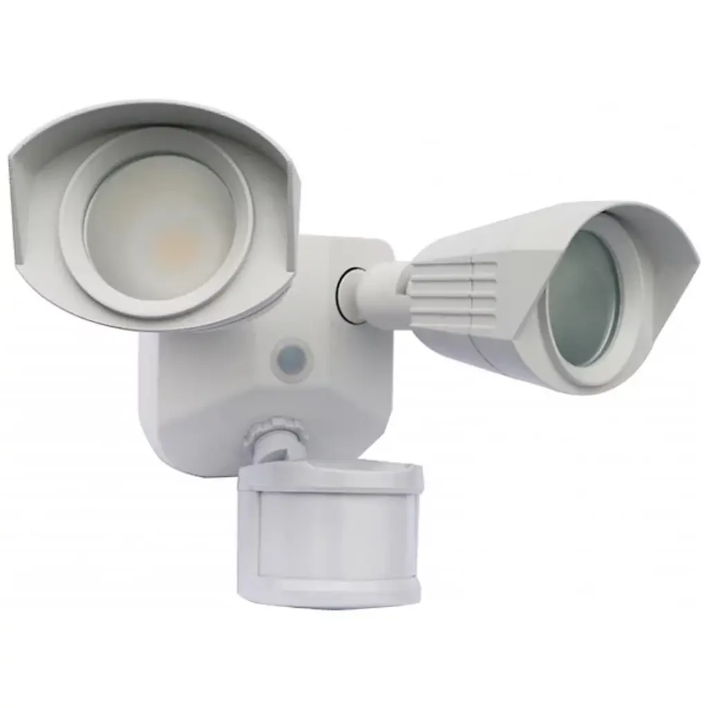 Have peace of mind with the LED Security Light by Satco Lighting. The NUVO frosted 20-watt LED dual head security light offers warm white lighting with a motion sensor. Illuminate walkways, patios, and entrances with this die-cast aluminum security light. Durable and long-lasting, this fixture delivers 50,000 hours of superior illumination.