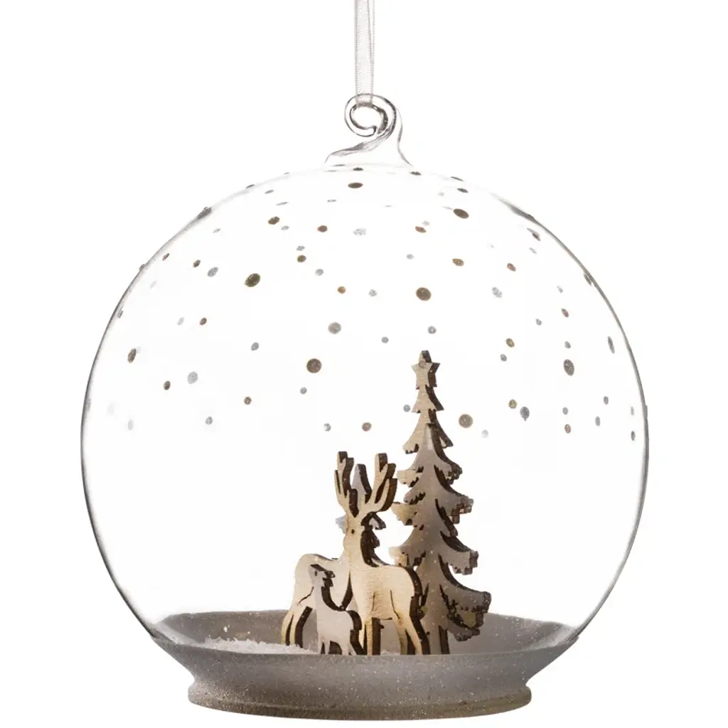 Led Snow Globe Ball With Woodland Deer Scene 11.5"h