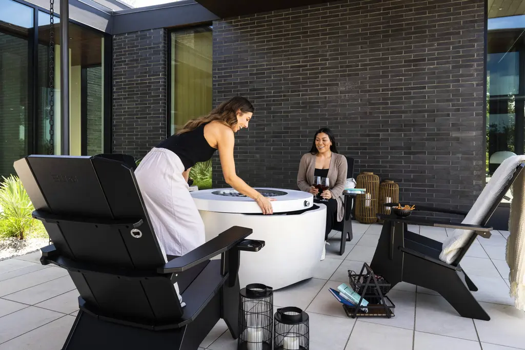 Elevate your outdoor gatherings with the Ledge Mainstay Adirondack and Legacy Halo Pivotglide Firepit ensemble. This inviting ensemble's firepit features a patented Pivotglide lid and sleek two-tone design. Its easy setup, hidden propane compartment, and advanced safety features make it the perfect blend of style and functionality for cozy evenings under the stars.The Mainstay Adirondack chairs blend modern elegance with timeless outdoor style. Built to endure the elements, they are the perfect addition to refresh your space and complement the firepit.Since 2011, Ledge Loungers is dedicated to creating luxury outdoor spaces where relaxation and enjoyment blend seamlessly. Focusing on quality and durability, their innovative in-pool pieces are crafted Commercial-Grade Resin to withstand the elements. Found in resorts and personal pools around the world, their luxury products are compatible with all pools and water types. Skillfully made in the USA, they are designed to give you an exceptional experience.