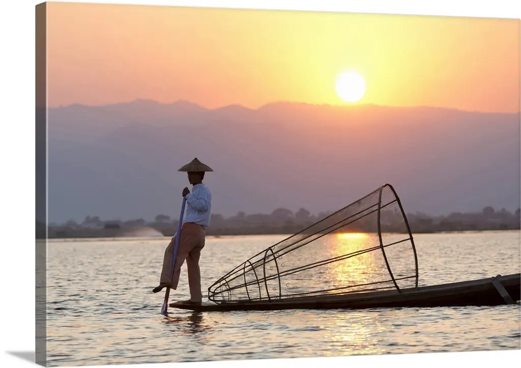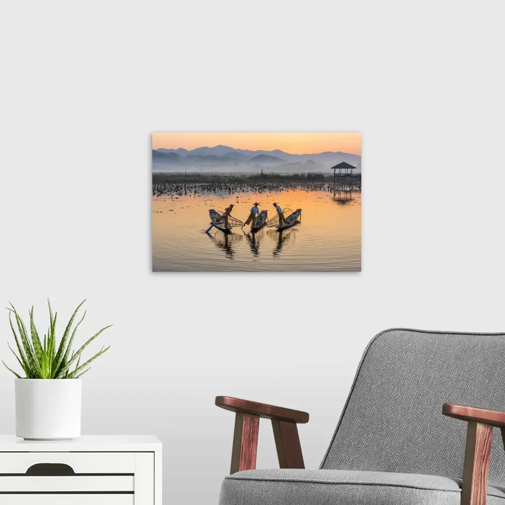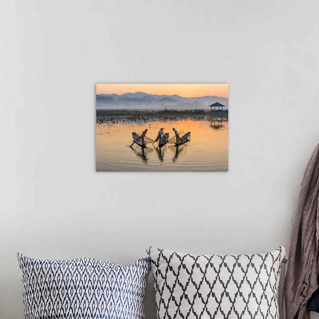 Leg-Rowing Fishermen Of Inle Lake At Dawn, Shan State, Myanmar