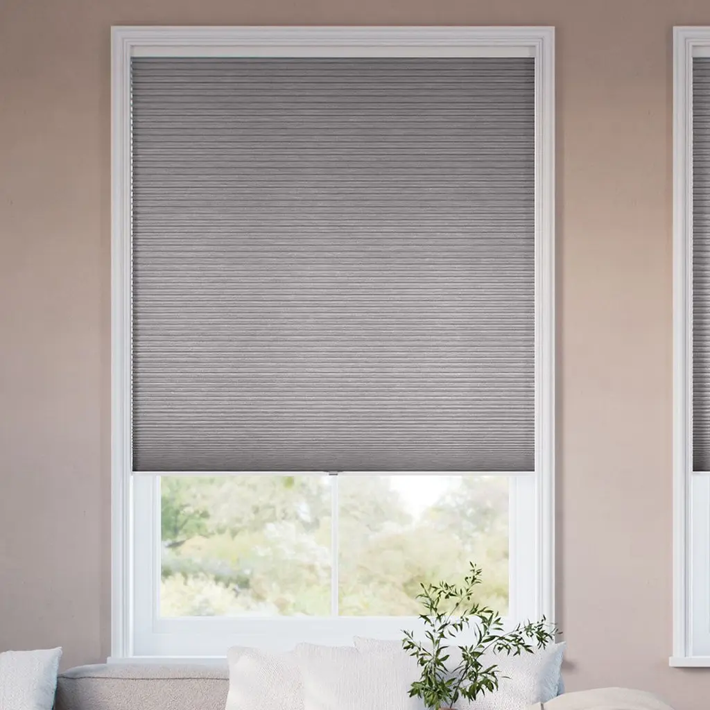 Legacy Blackout Cellulars – Ultimate Light Control with Energy Efficiency Transform your home with Legacy Blackout Cellular Shades, designed for superior light blockage and year-round energy efficiency. These sleek, cool-toned neutral shades provide a modern aesthetic while their honeycomb structure insulates your space, keeping it cooler in summer and warmer in winter. The blackout fabric ensures increased darkness, making them ideal for bedrooms, nurseries, and media rooms. With a cordless lift system for a streamlined and child-safe design, these shades offer both function and style.