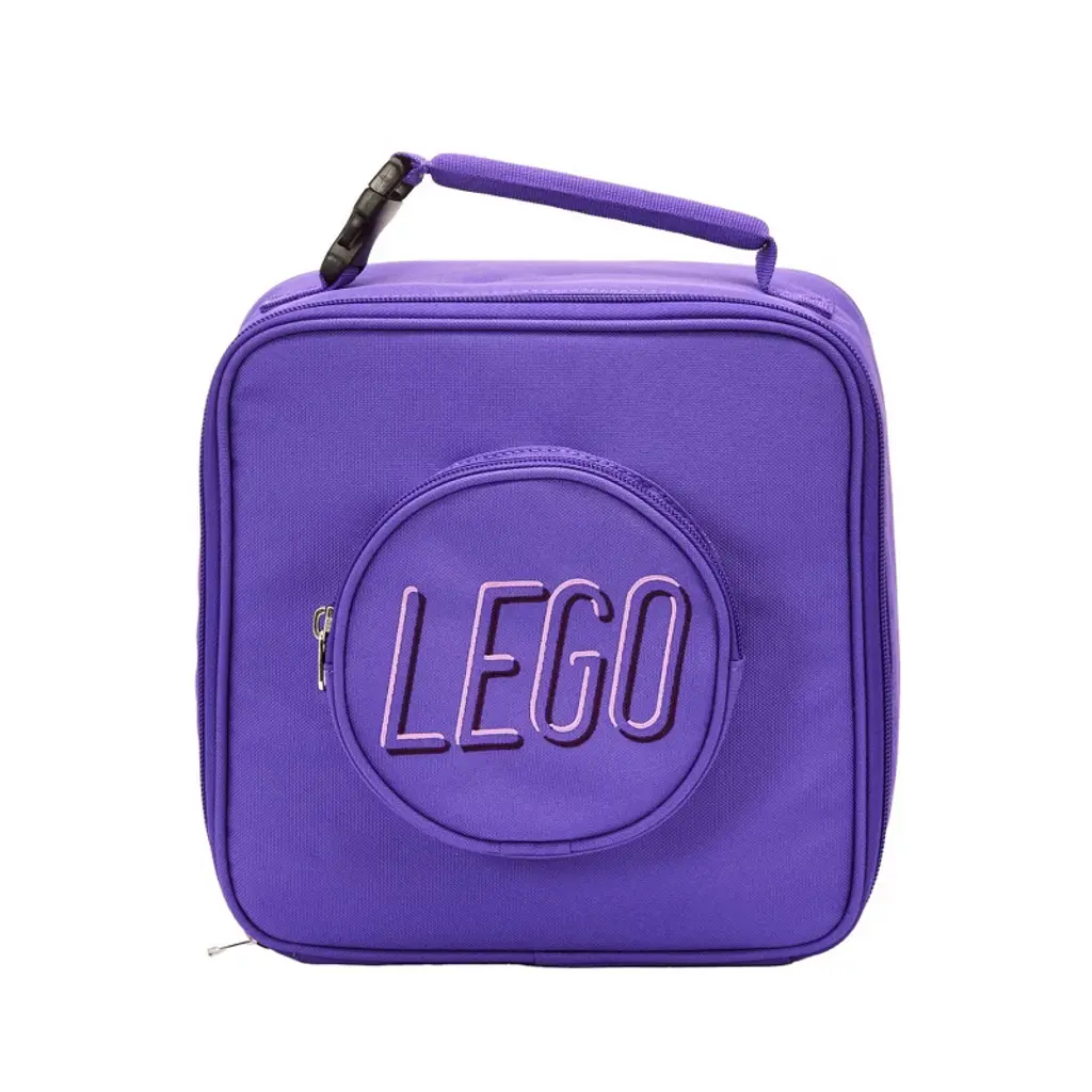 For every industrious builder there are two essentials: a 1x1 brick and a healthy lunch. With classic brick shaping, a functioning knob-styled pocket, and insulated interior, LEGO® Brick Lunch protects your midday fuel while looking cool. Available in Red, Orange, Green, Blue, Navy, Black, gray, and Purple. The brick lunch is contstructed with a durable 600D reycled polyester with an interior lining so it's easy to wipe clean. A front knob pokcet is perfect for stroring small items such as a napkin or utensils or an easy to grab snack for that mid morning break. The lunch bag stays secure with a ykk zipper. The interior there is plenty of room to pack your resuasble containers. A small mesh pocket with hook and loop secures additional small items on the interior panel. A padded haul handle is perfect for carrying or you can attach to your backpack for convenient carry!