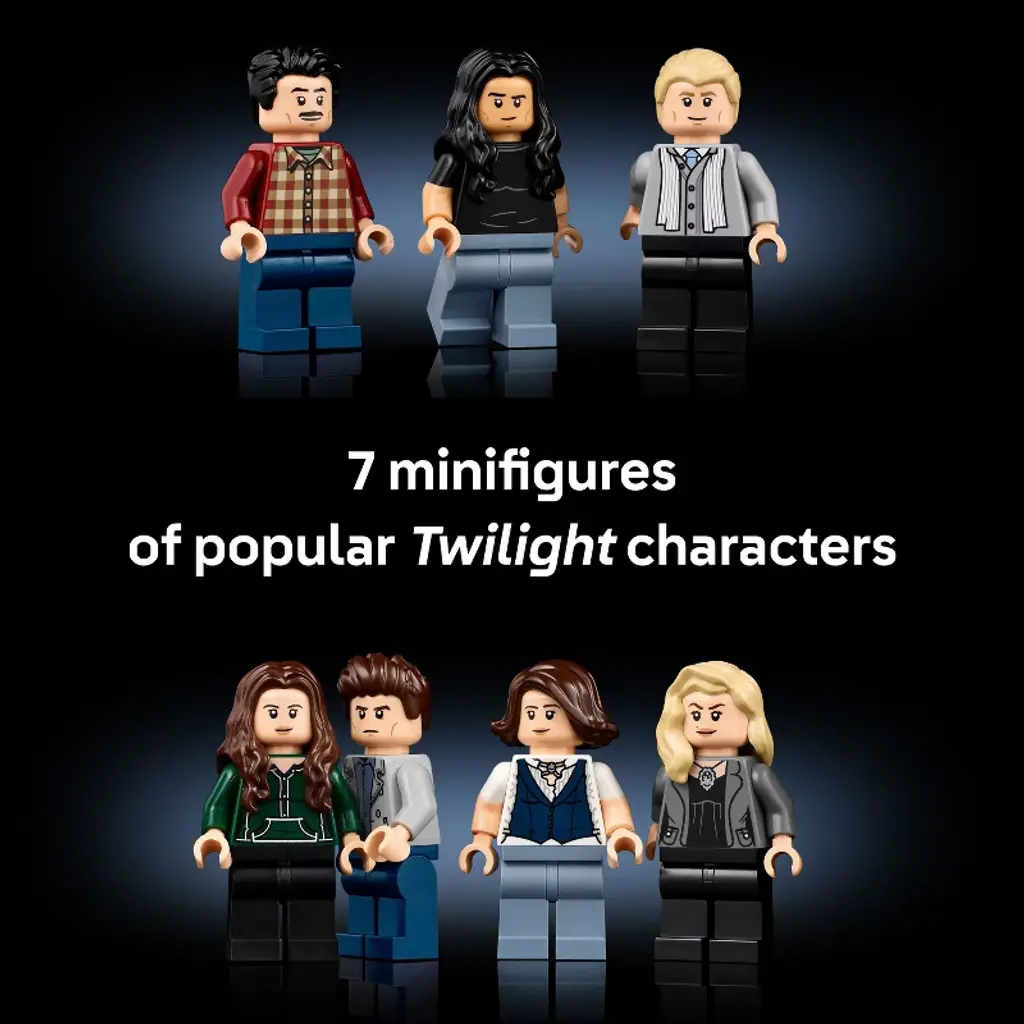 Step into a supernatural saga with the LEGO Ideas Twilight Cullen House (21348). This building set for adults, ages 18 and up, captures the iconic modernist glass home where Edward, Bella, and the immortal Cullen family's story unfolds. The stunning three-story residence features removable levels and roof for easy access to authentic interior details. Display seven fan-favorite minifigures including a sparkling Edward Cullen, Bella Swan, Jacob (with additional, brick-built wolf figure), Carlisle, Alice, Charlie, and Rosalie. Twilight enthusiasts will recognize beloved elements from the films—Edward's grand piano, the balcony planters, Bella's classic truck, and the special tree where their supernatural romance blossomed. This collectible display piece was designed by passionate LEGO fans through the LEGO Ideas program, ensuring every detail honors the beloved vampire romance that captivated millions. Perfect as a DIY craft project for adult fans building solo or together, this Twilight merchandise lets you revisit Forks, Washington whenever nostalgia strikes. Contains 2,001 pieces.