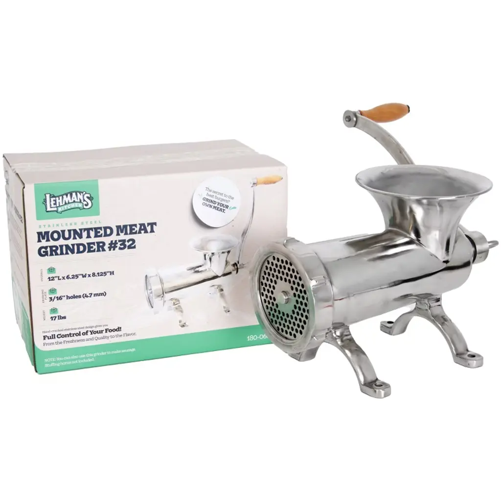 Lehman's Clamp-down Meat Grinder #32, Manual Hand-cranked Stainless Steel Meat Grinder For Home Use, Easy To Clean And Store
