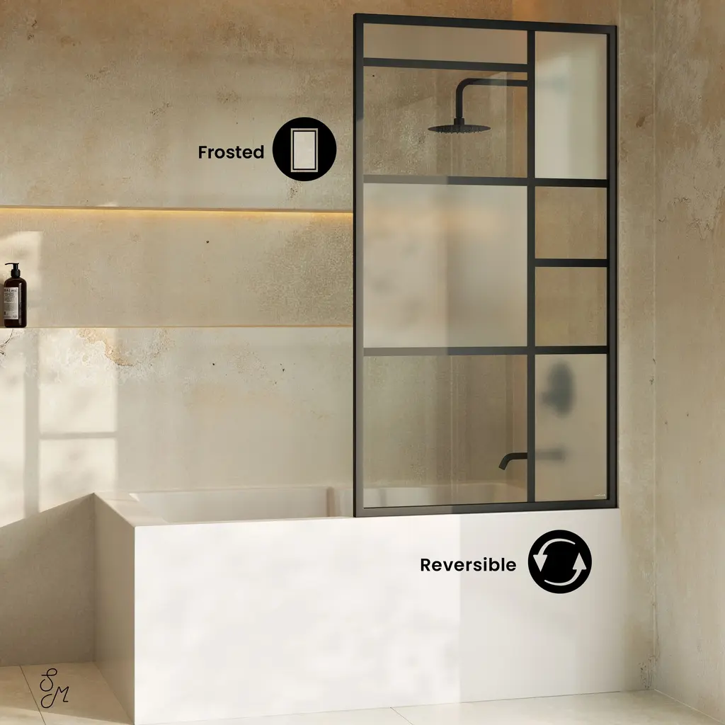 Leiden 34 X 58 Framed Fixed 3/8 In. (10mm) Frosted Tempered Glass Tub Door With Black Matte Frame - 34 X 58 - 34 X 58 - Clear