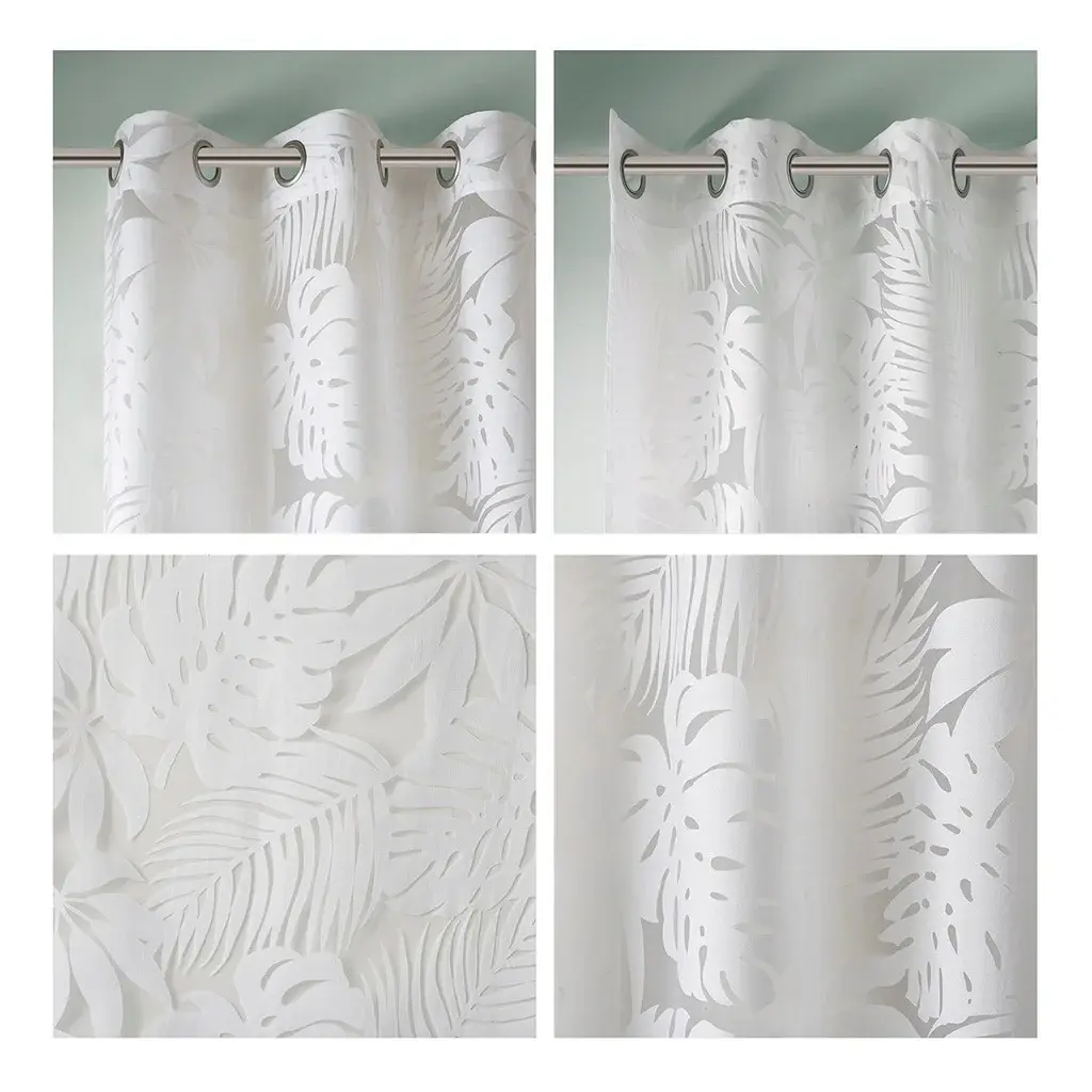 Leilani Palm Leaf Burnout Window Sheer White - 50"x84"