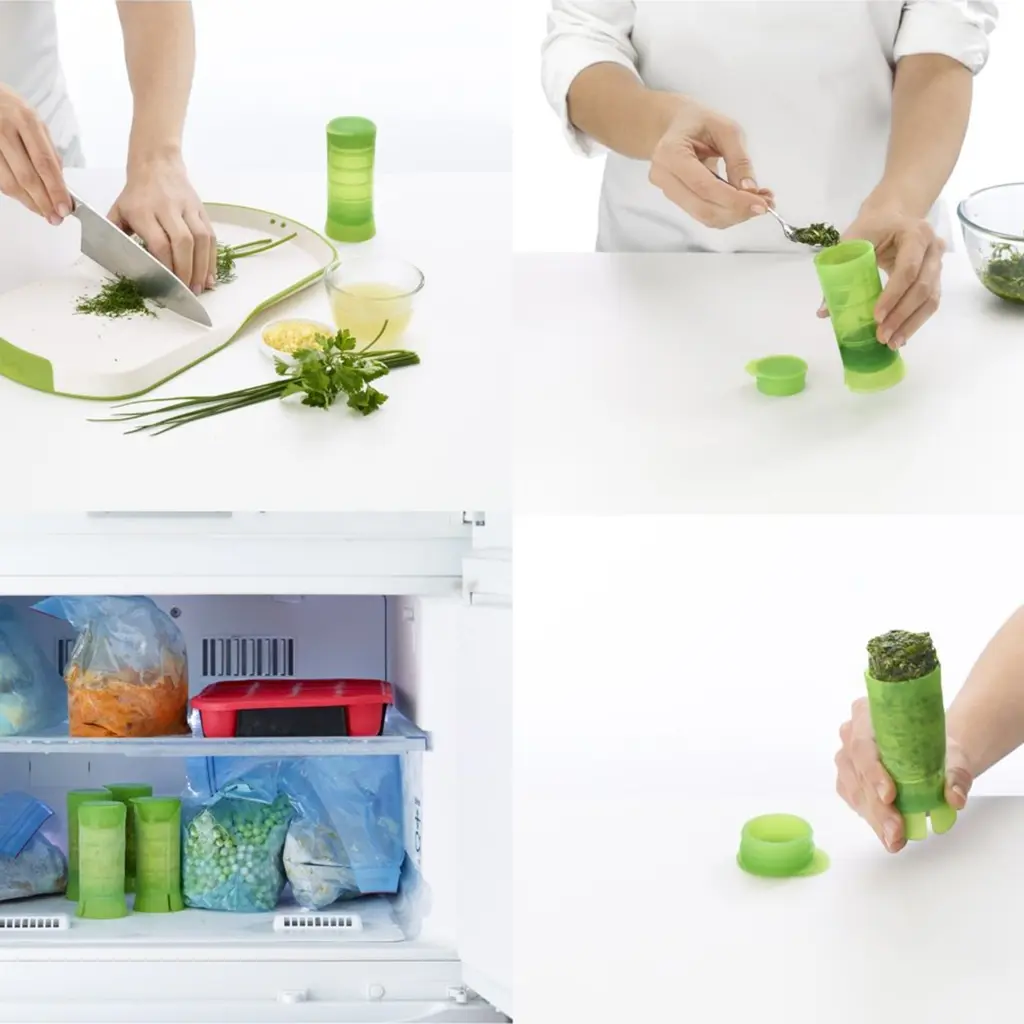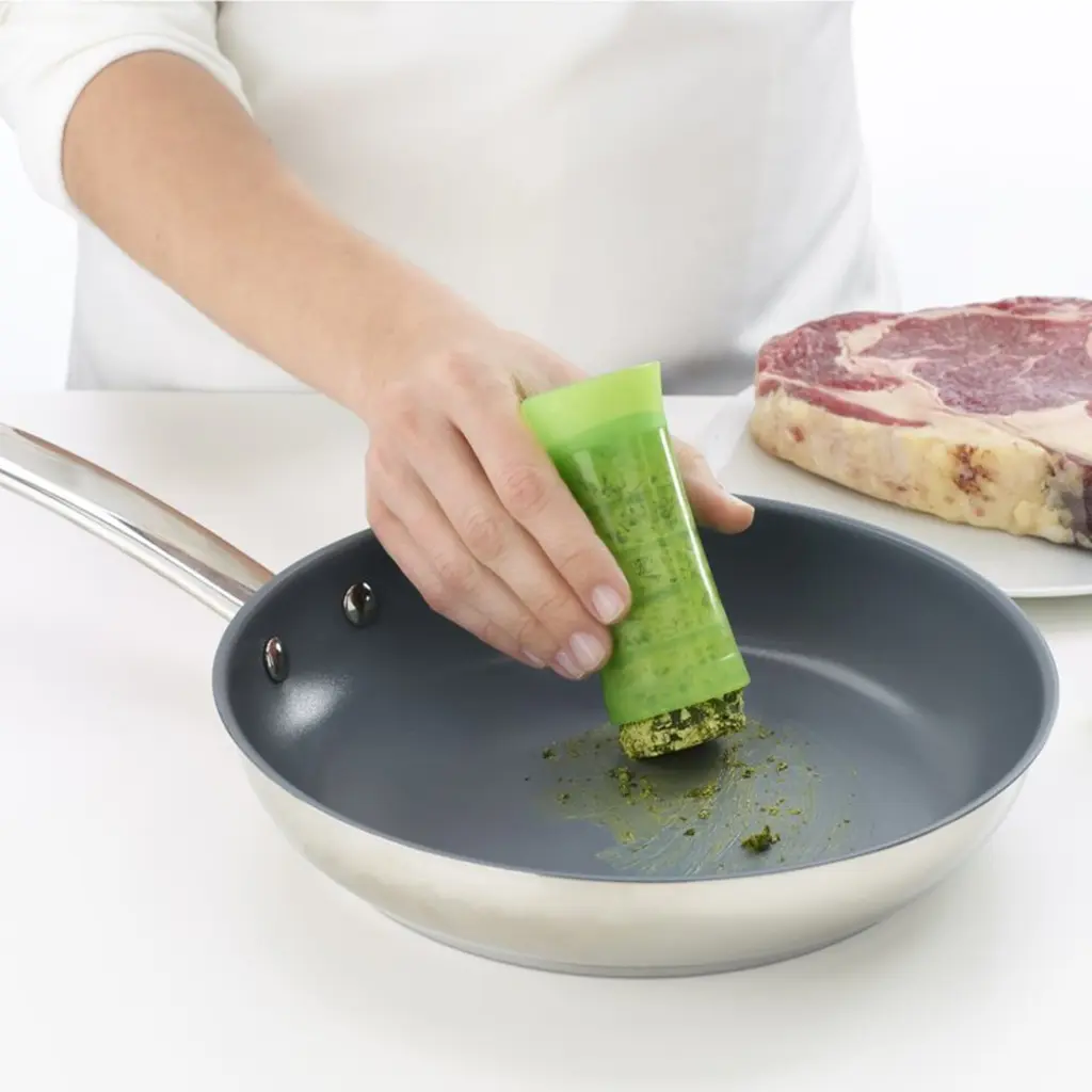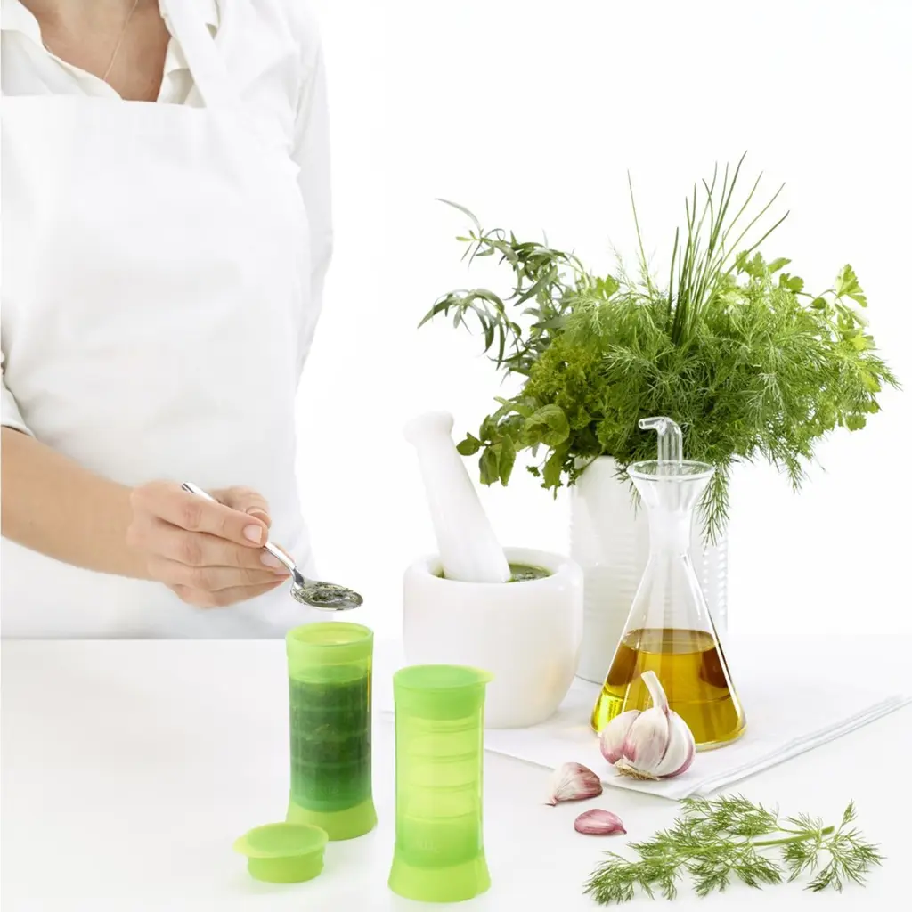 Lekue Herbstick Herb Preserver for Kitchen - Innovative Platinum Silicone Herb Storage & Grating Tool - Herb Keeper for Fresh Herbs, Soups, Stews - Dishwasher, Microwave, Oven, Freezer Safe - NewThe Lekue Herbstick is an innovative tool designed to keep fresh herbs or custom herb mixtures ready for your next culinary adventure. Whether you’re preparing a cozy soup, a savory stew, or a sizzling dish on the stovetop, this versatile herb preserver simplifies the process of adding fresh, flavorful herbs to your meals. Slice it to melt directly into hot pans, cut pieces to enrich your soups, or grate finely over finished dishes for a burst of herbal goodness. Crafted from platinum silicone, the Herbstick sets itself apart with its outstanding durability and safety. This high-performance material can withstand extreme temperatures ranging from -60°C to 220°C, ensuring the preserver is suitable for use in the microwave, oven, refrigerator, or freezer. Additionally, the herb preserver repels water and germs, which guarantees both maximum food safety and minimal cleaning efforts. The non-stick properties mean there’s no need for greasing, making the herb storage and removal process seamless and efficient. The easy-to-use design makes preparing herbs convenient for both everyday home cooks and adventurous culinary creators. Dishwasher-safe and non-porous, the Herbstick offers exceptional hygiene by preventing residue buildup, so your herbs maintain their original flavors. Included recipes guide you to experiment with various herb mixtures, though the possibilities are endless for creating your own signature blends. Add a touch of freshness to your kitchen with the Lekue Herbstick. It’s the kitchen essential that brings flavor, convenience, and safety, ready to support your cooking experiences, one fresh herb at a time.FEATURES:COLOR:MATERIAL:WHAT'S IN THE BOX:PACKAGING: Retail Packaging