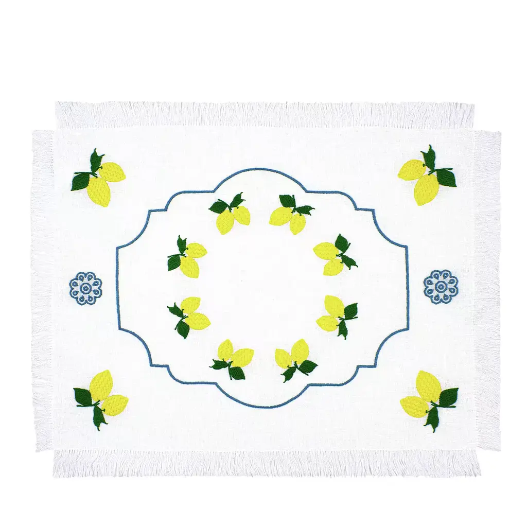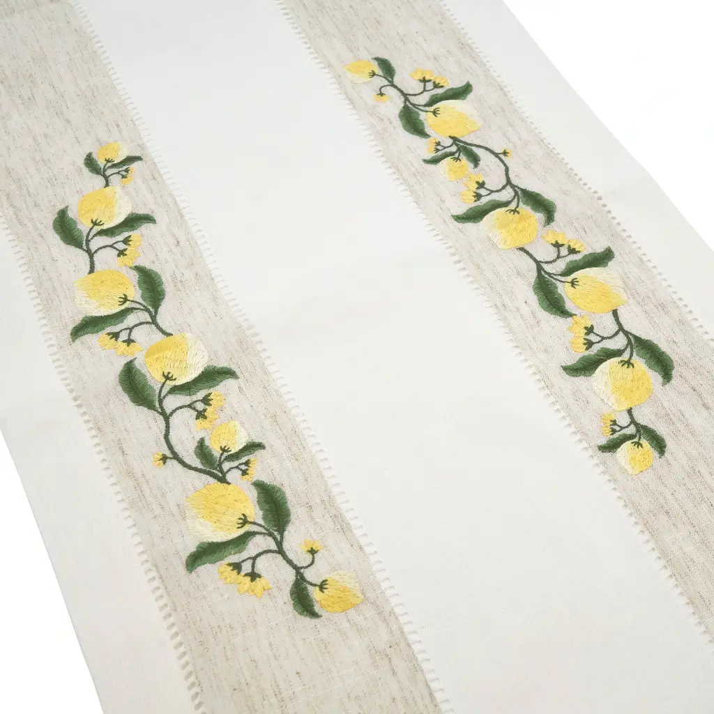 Lemon Embroidery Hemstitch Runner - N/a