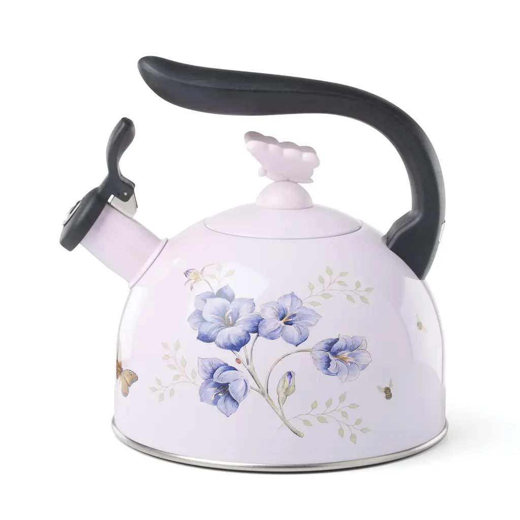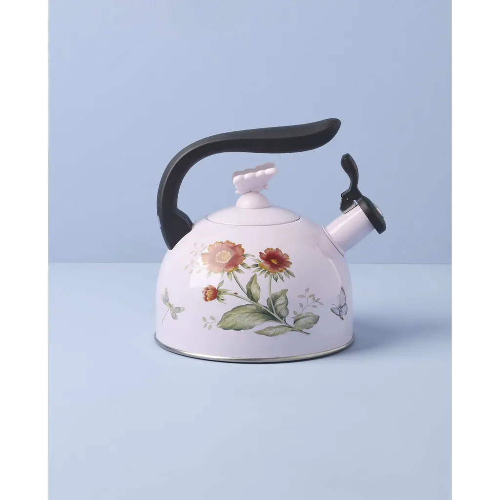 Lenox Butterfly Meadow Tea Kettle, Enamel 2.5-Quart - Pink
