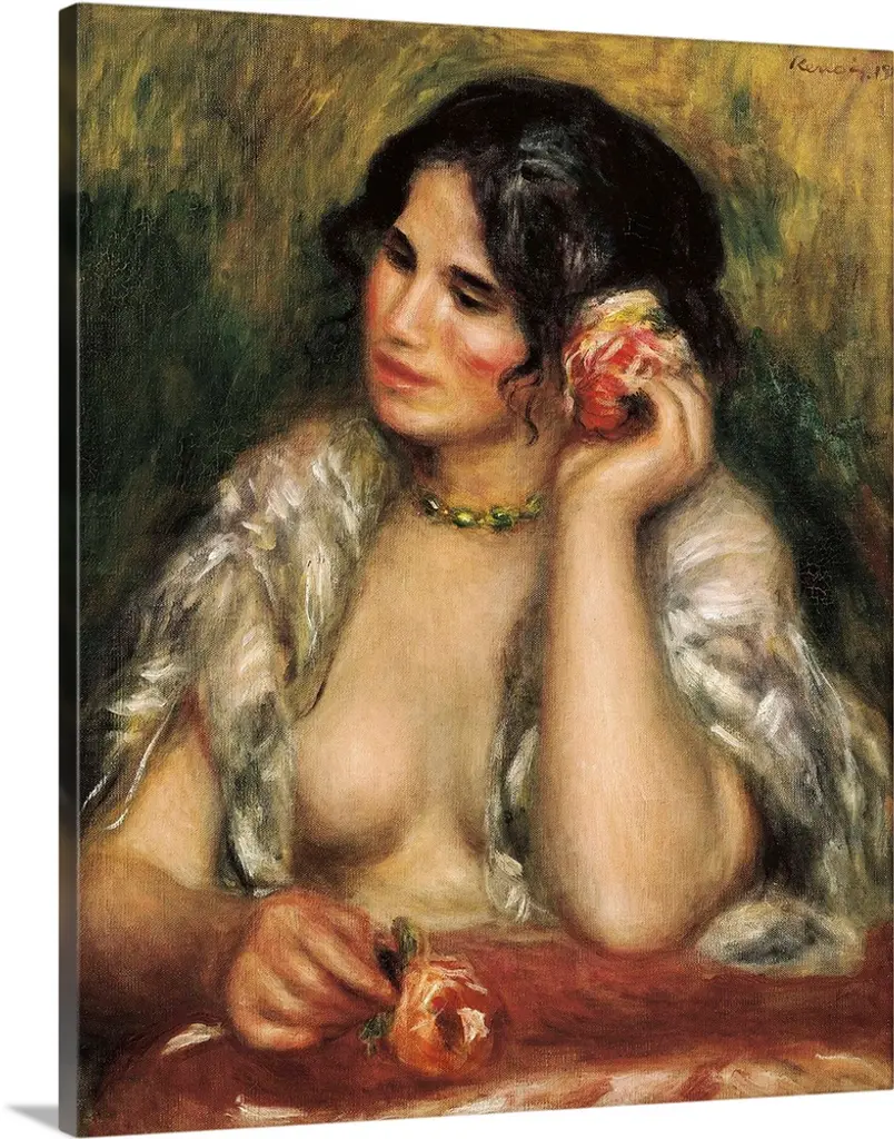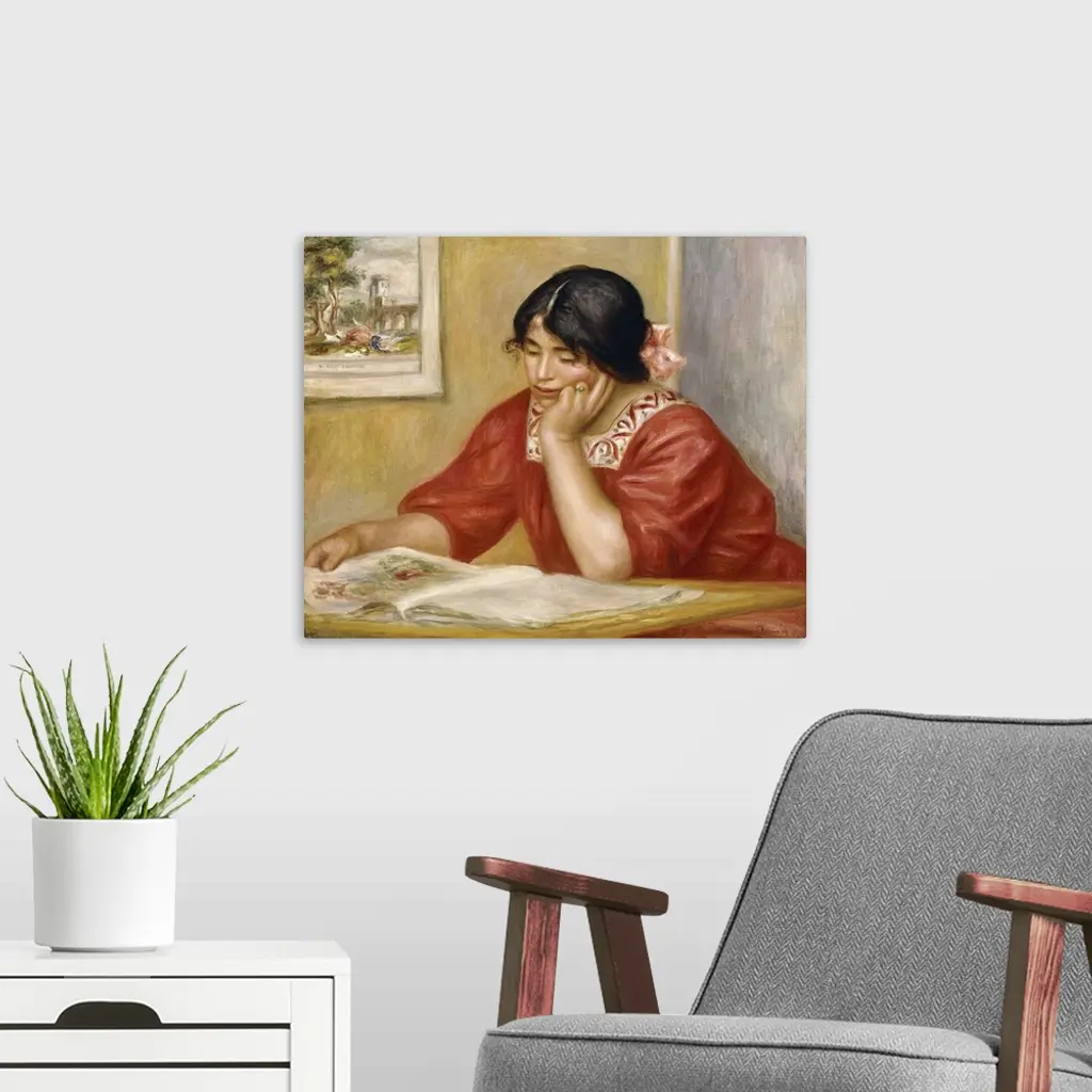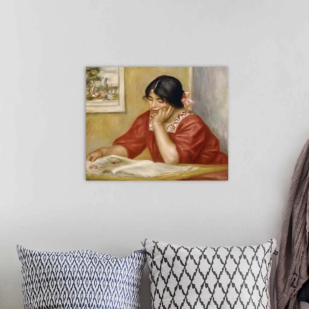A classic masterpiece by one of the leading French impressionist painters featuring a woman calmly reading a book at a table