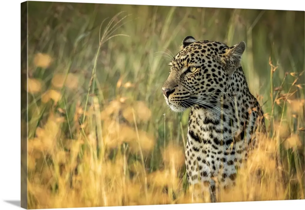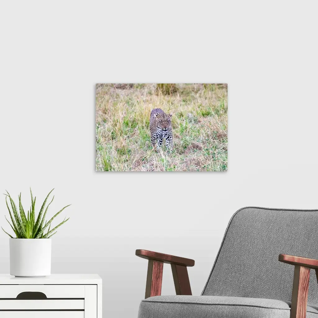 A leopard stalks it's prey in the Serengeti, Tanzania, Africa.
