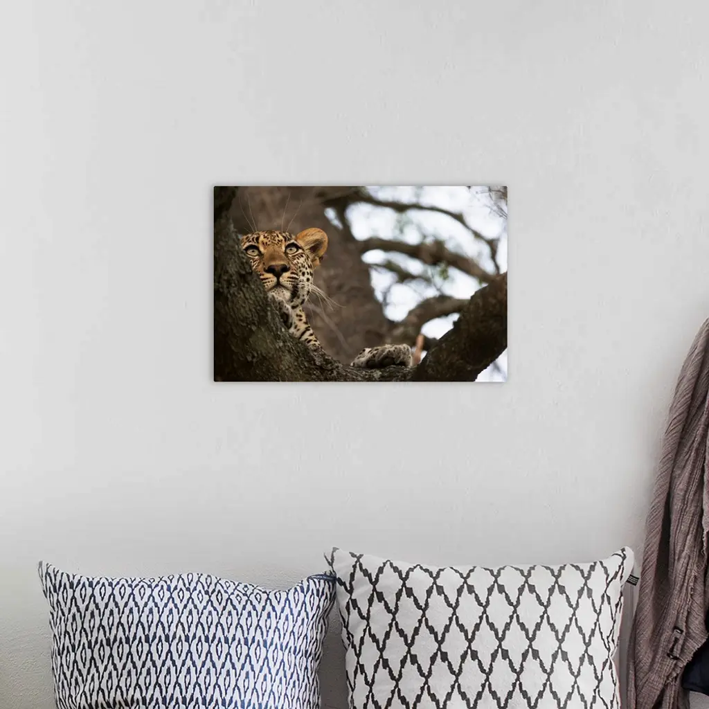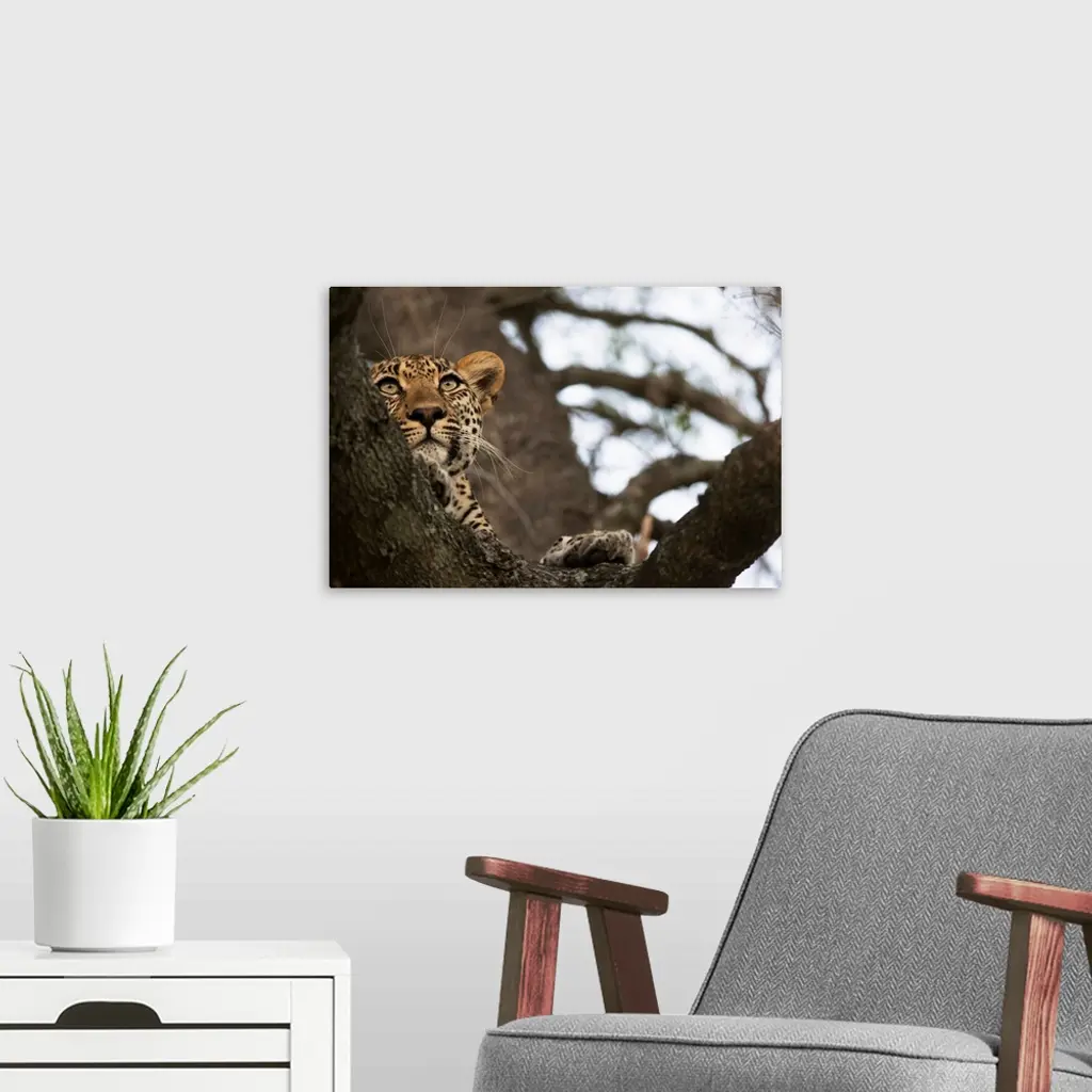 Leopard (Panthera Pardus) Lounging In A Tree Looking For It's Next Meal, Sabi Sand Game Reserve, South Africa