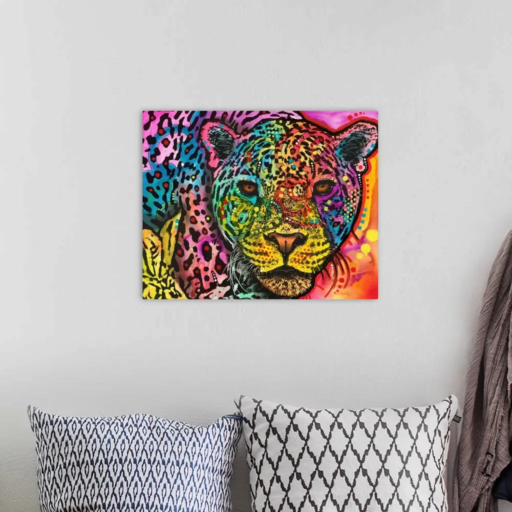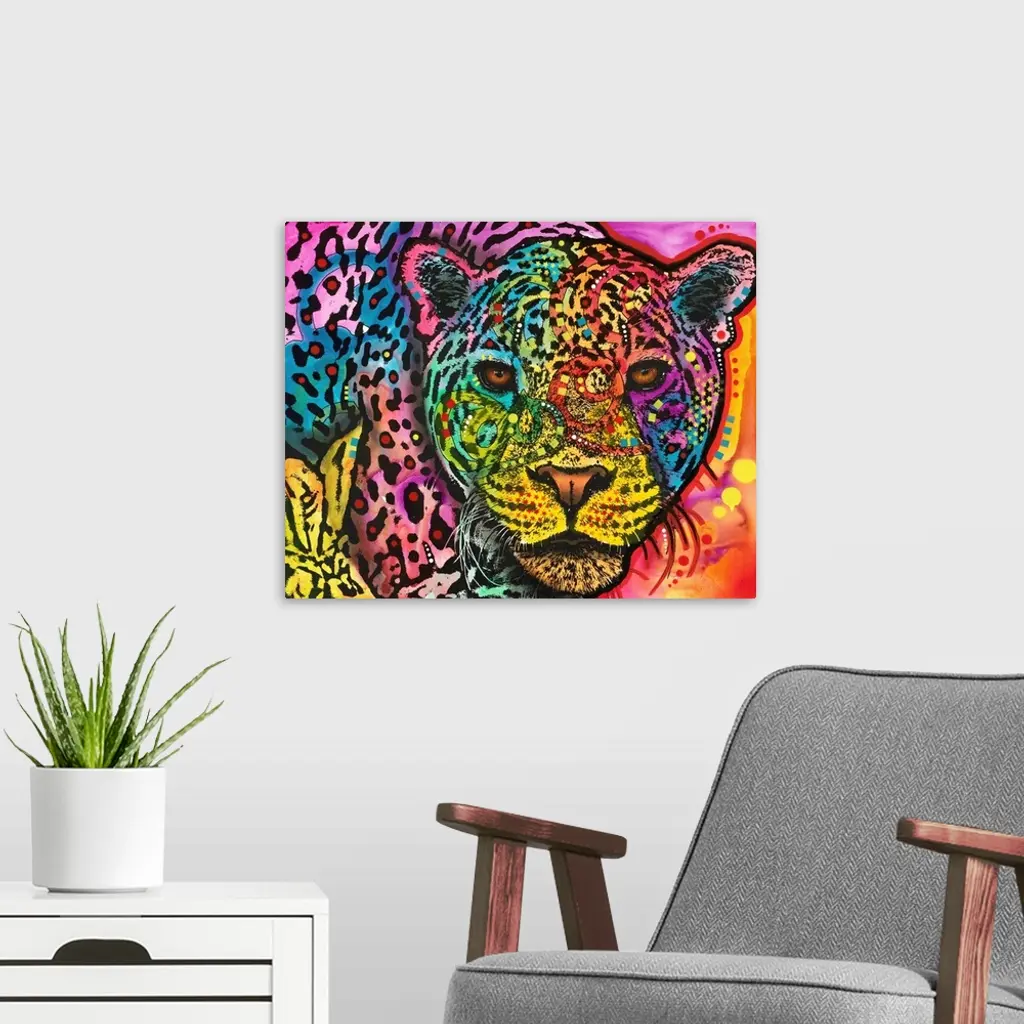 Close-up illustration of a Leopard with different colors and abstract markings all over.