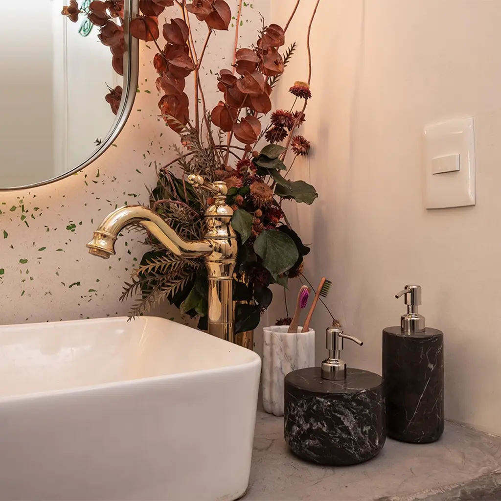 Dispenser made of travertine marble. Perfect for pouring, body cream, antibacterial gel, liquid soap etc. Beautiful elegant accessory for bathroom vanity or shower. Create the perfect set and beautify any bathroom with our other bathroom accessories: tray, containers, dispensers, brushes, jars, tissue boxes.Also made in other marble colors