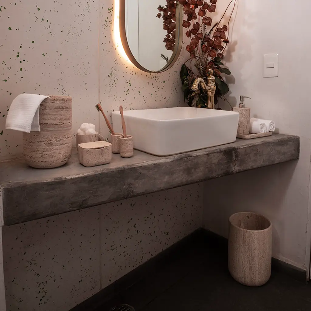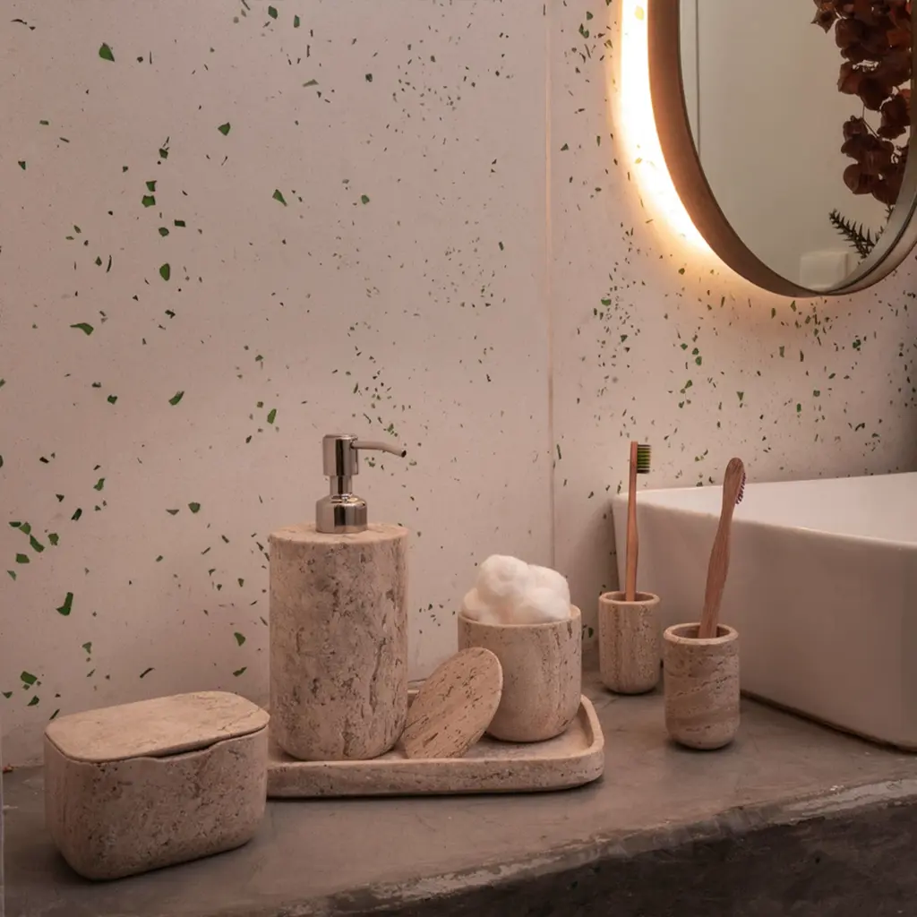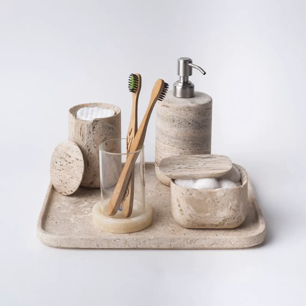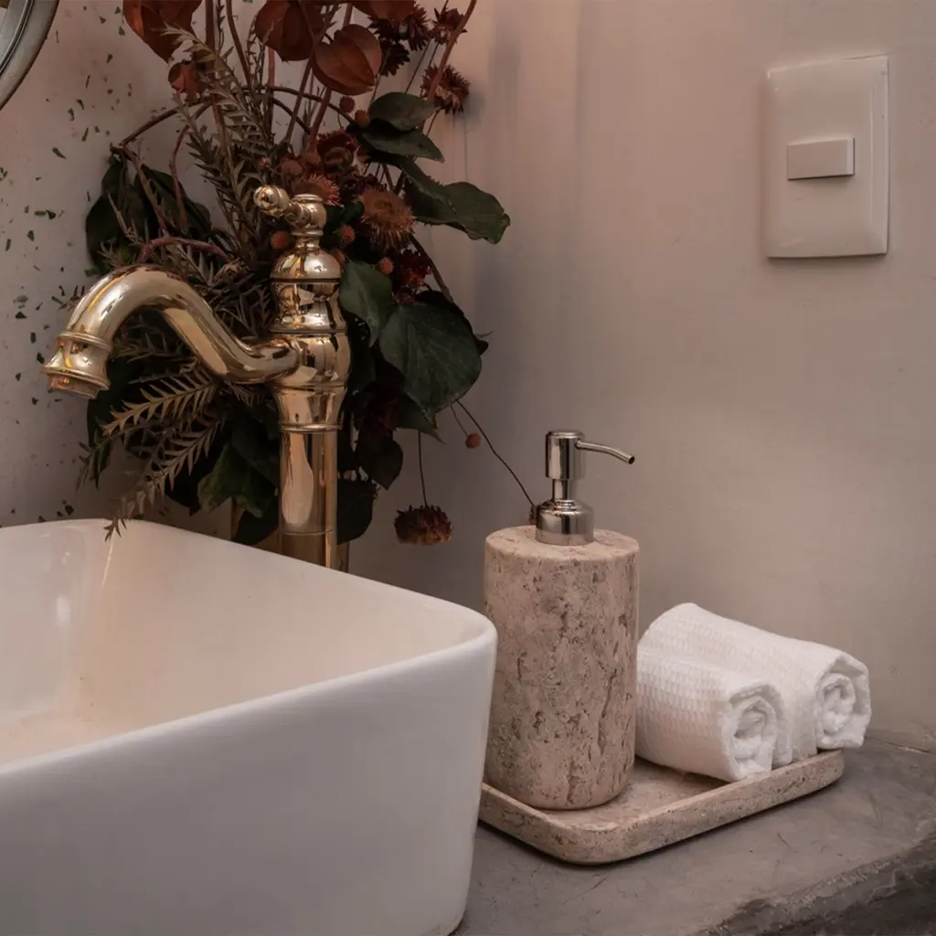 Less Is More High Dispenser - Travertine Marble