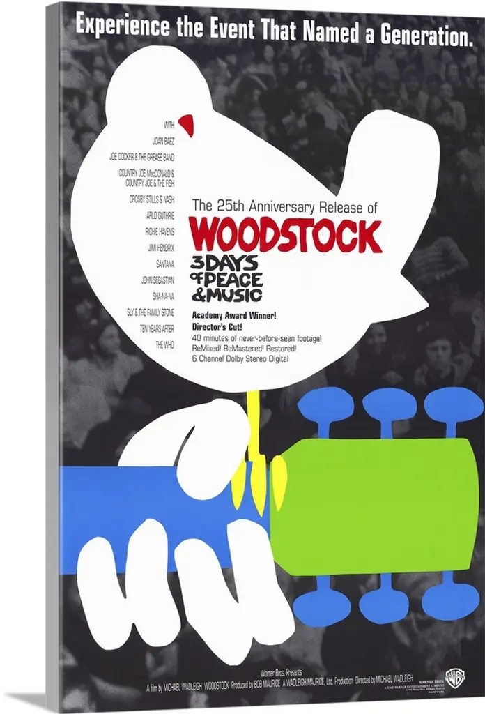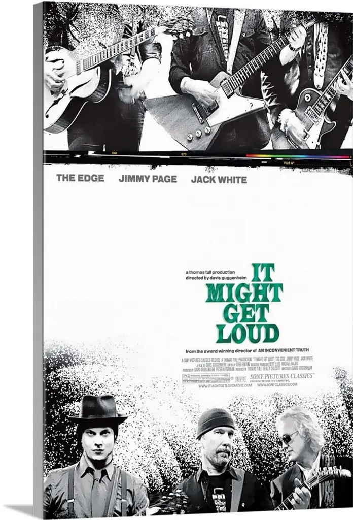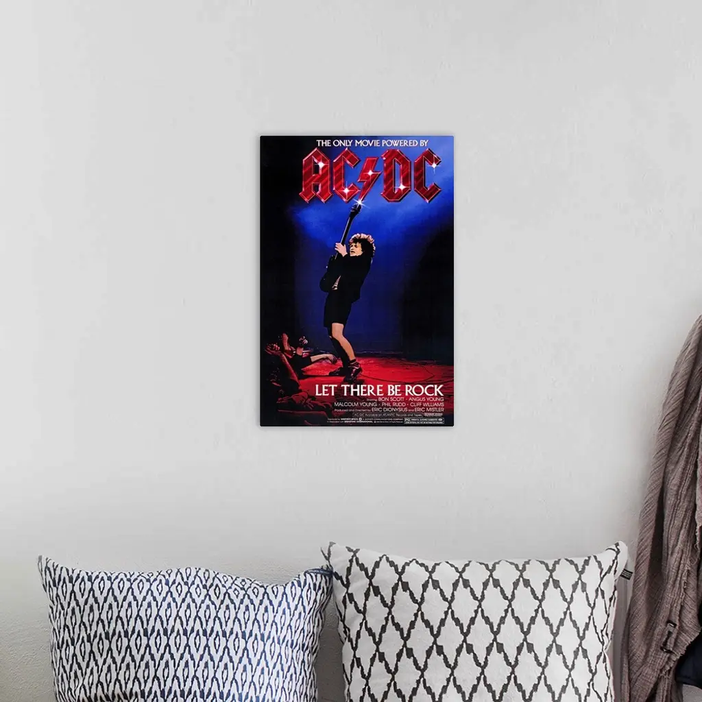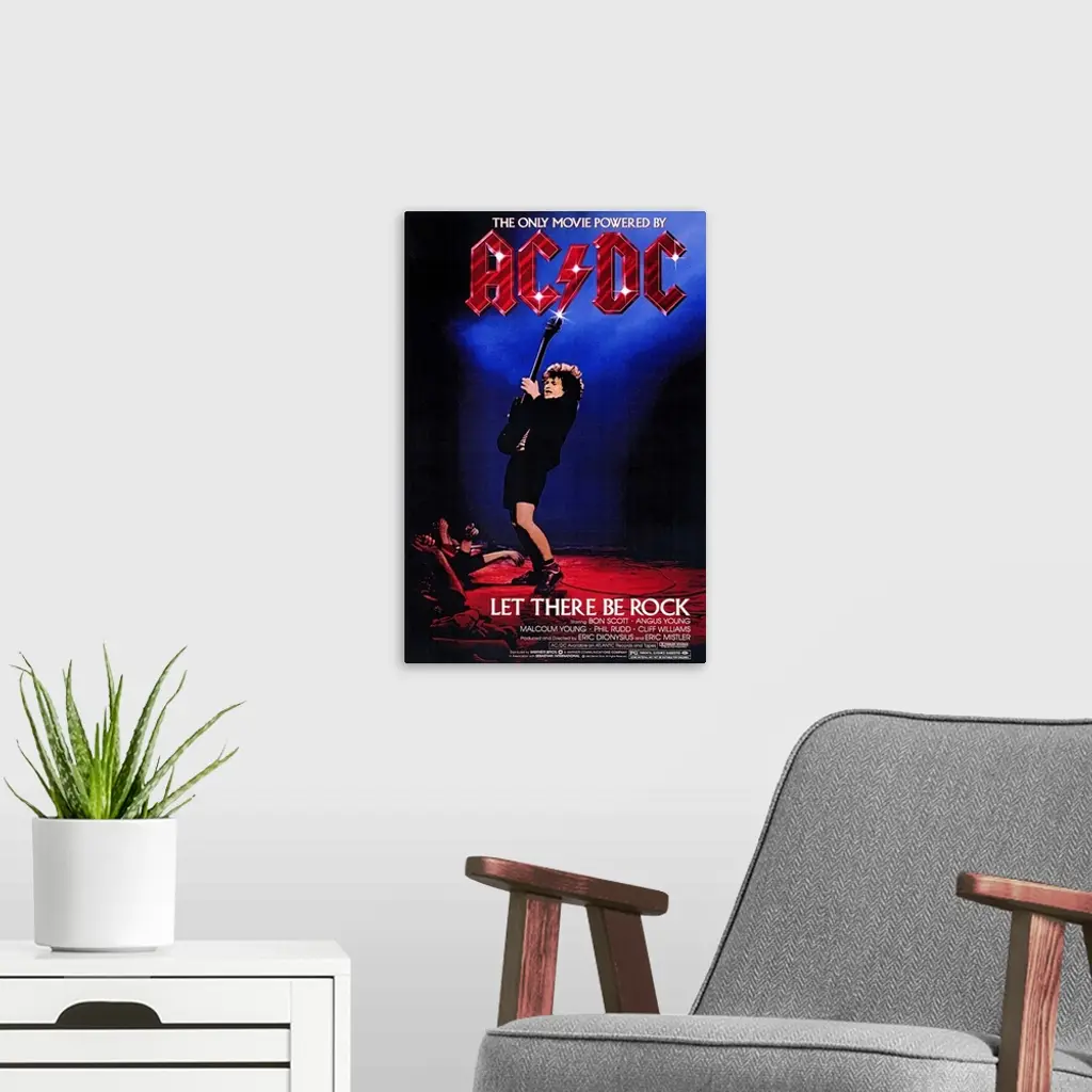 Poster for the movie titled "Let There Be Rock". It shows a guitar player at the edge of the stage playing with the crowds hands reaching out over the stage.