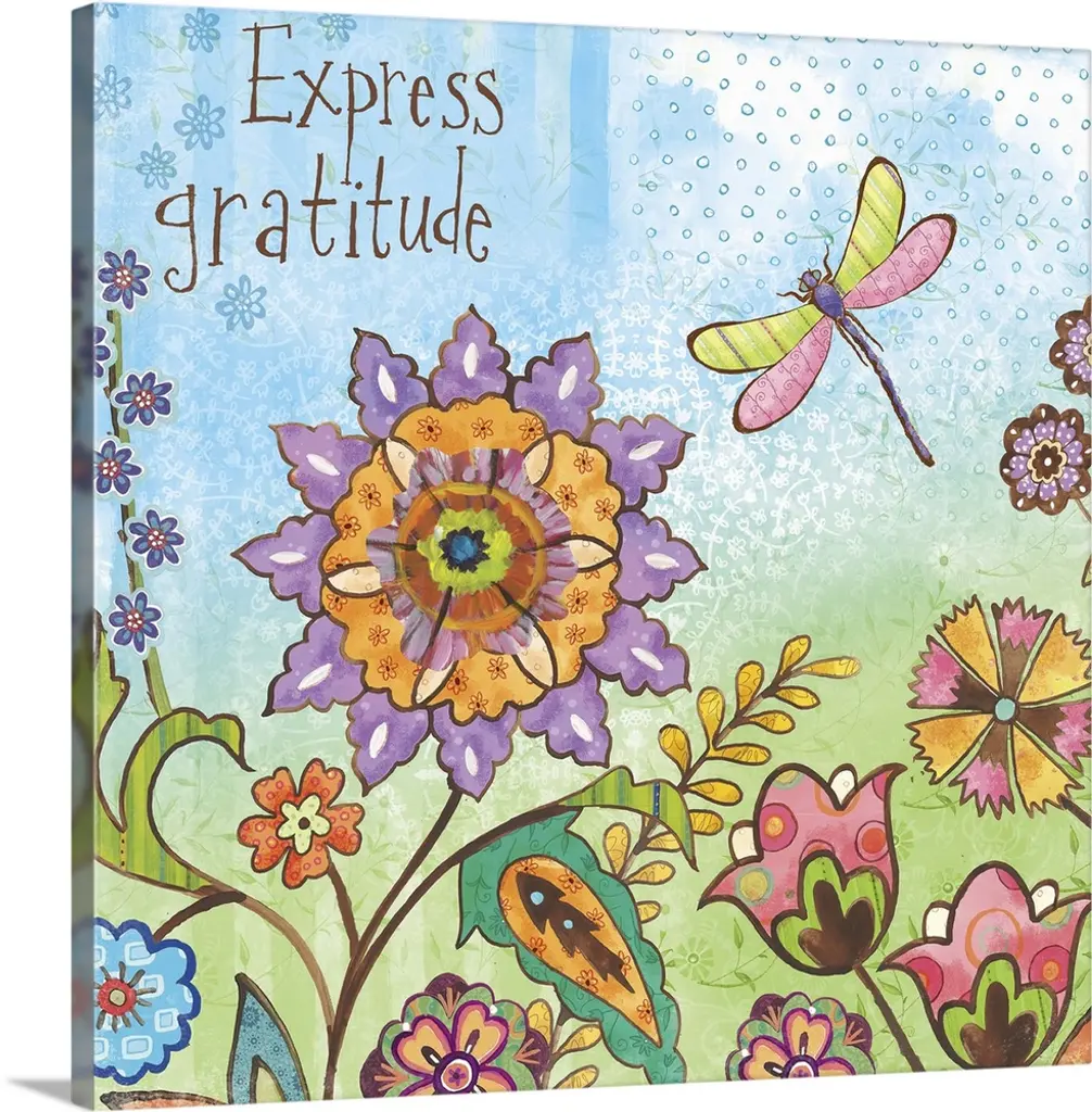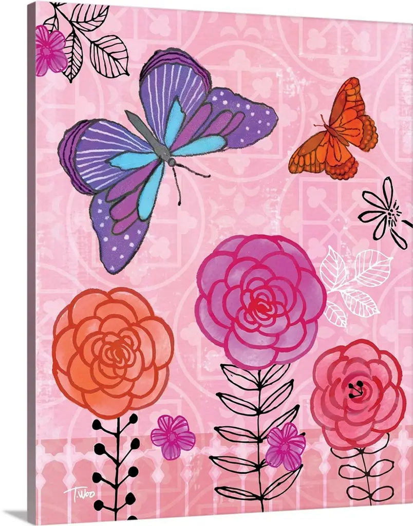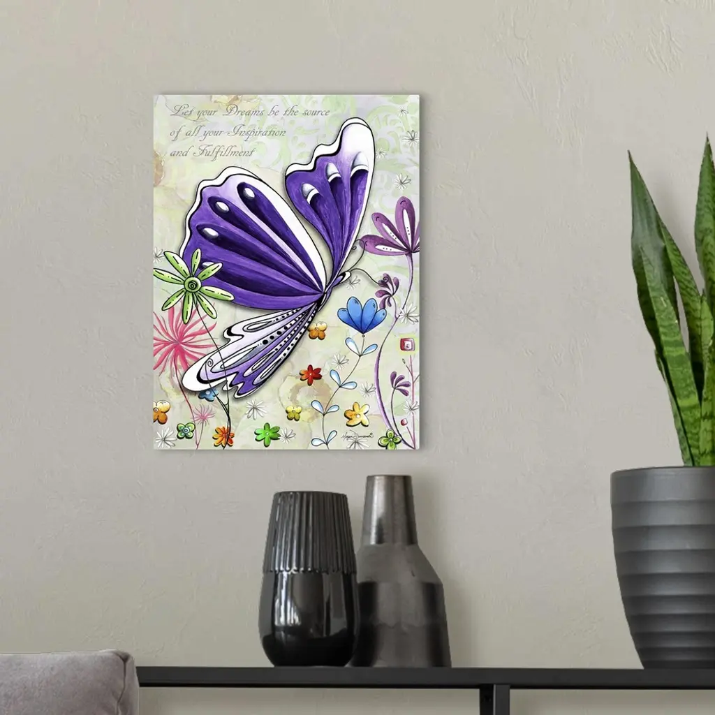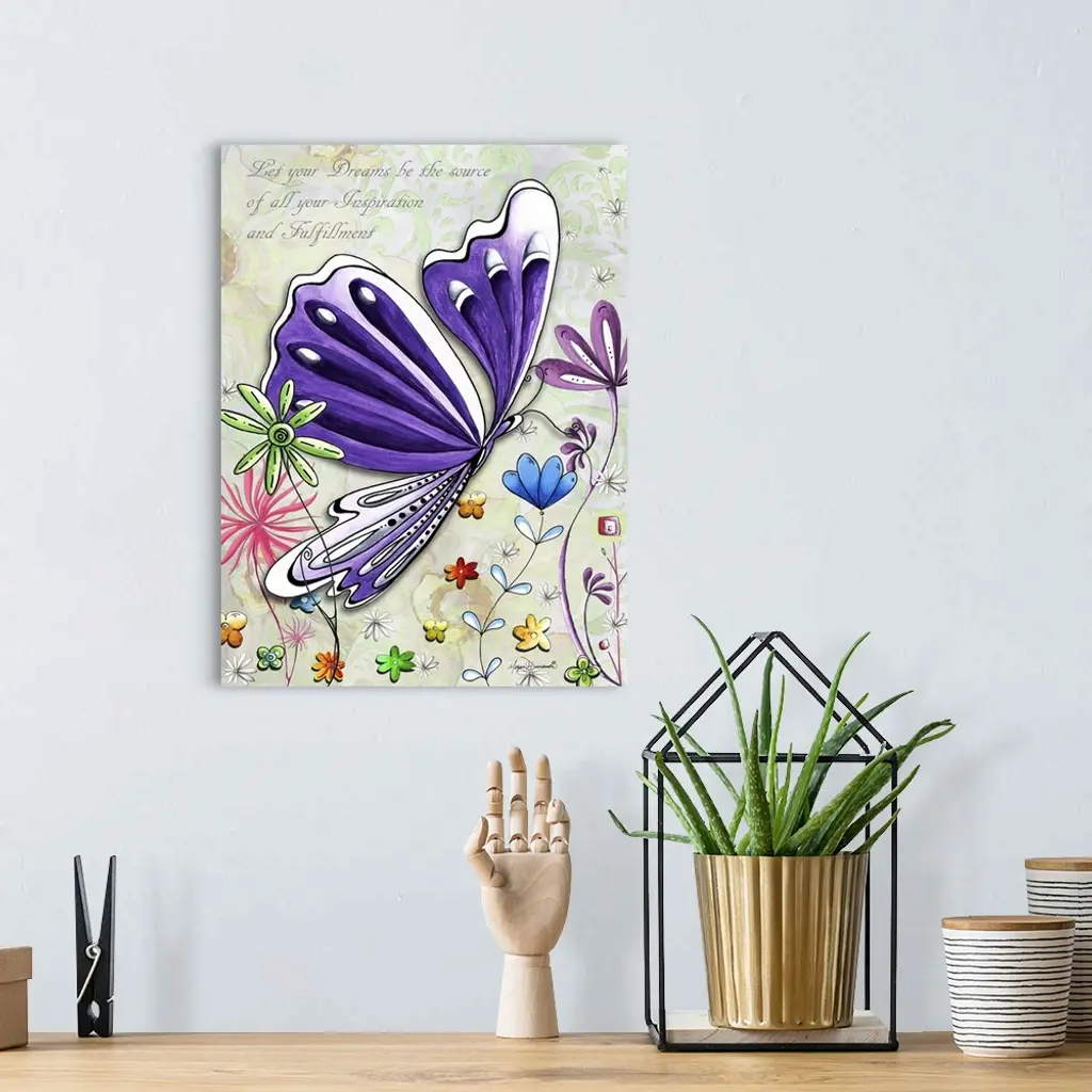 Illustration of a large purple butterfly in a field of multi-colored flowers with an inspirational quote.