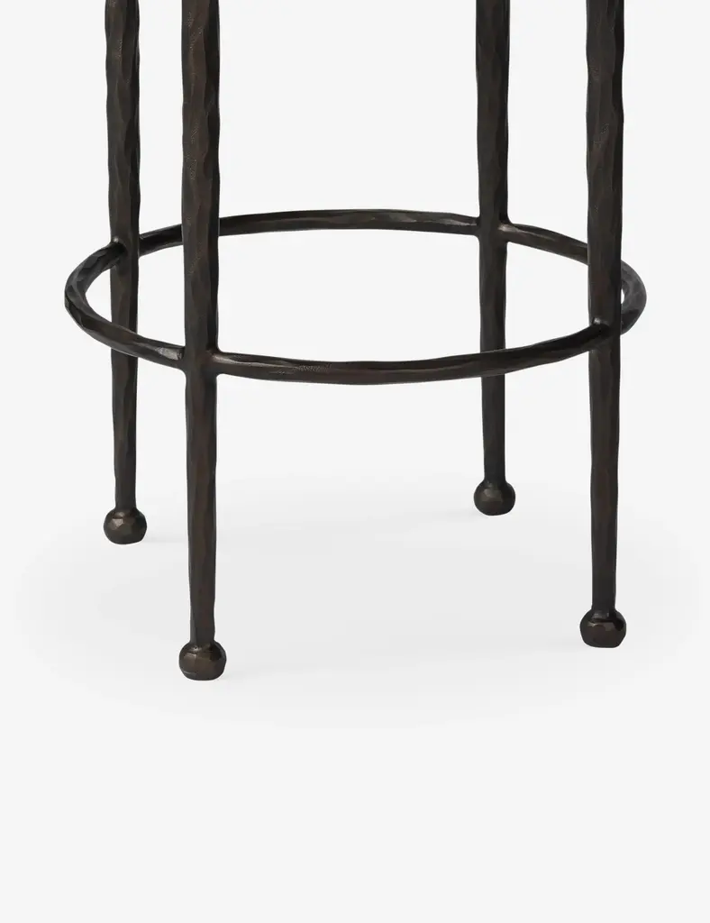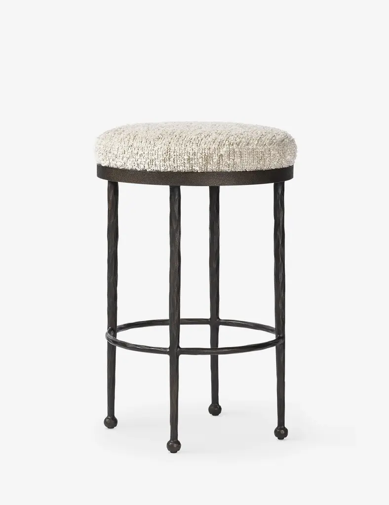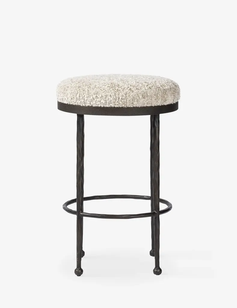 The Letlow counter stool brings a refined edge to your space with just the right touch of texture. A hammered iron base and rich upholstery nod to classic design, while the pared-back silhouette keeps it effortlessly modern. Available in counter or bar height, it brings elevated seating to kitchens, bars, and beyond.