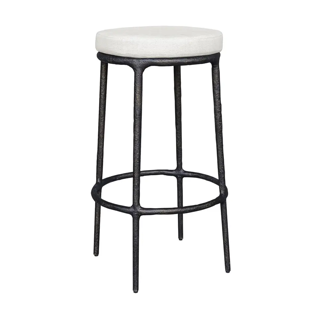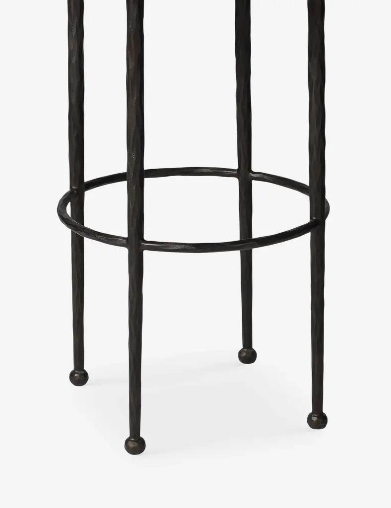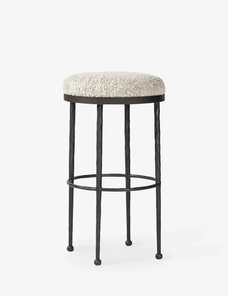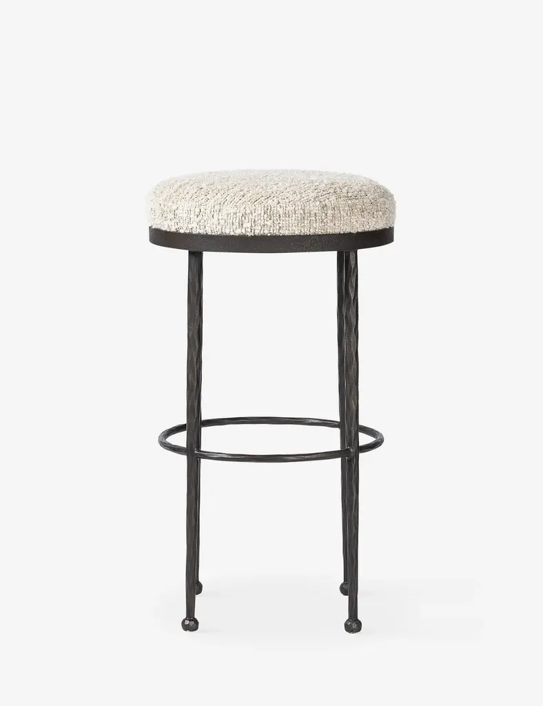 The Letlow counter stool brings a refined edge to your space with just the right touch of texture. A hammered iron base and rich upholstery nod to classic design, while the pared-back silhouette keeps it effortlessly modern. Available in counter or bar height, it brings elevated seating to kitchens, bars, and beyond.