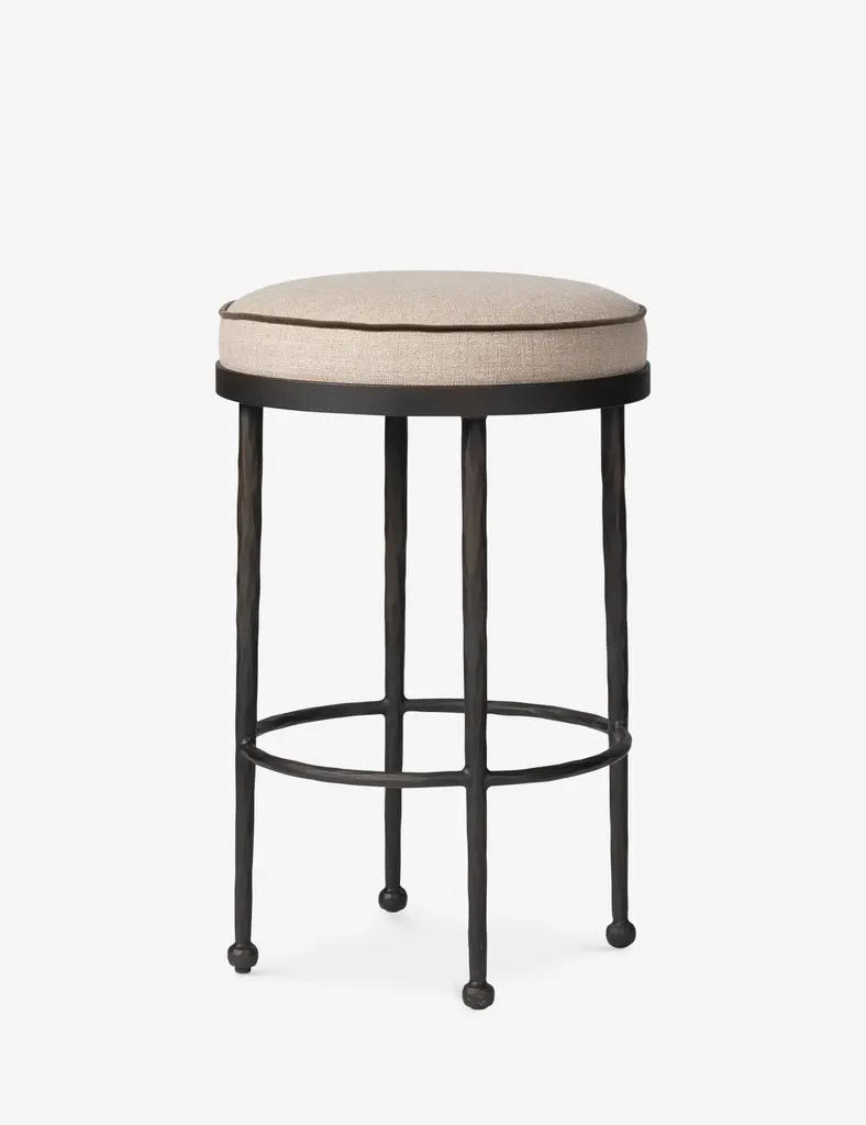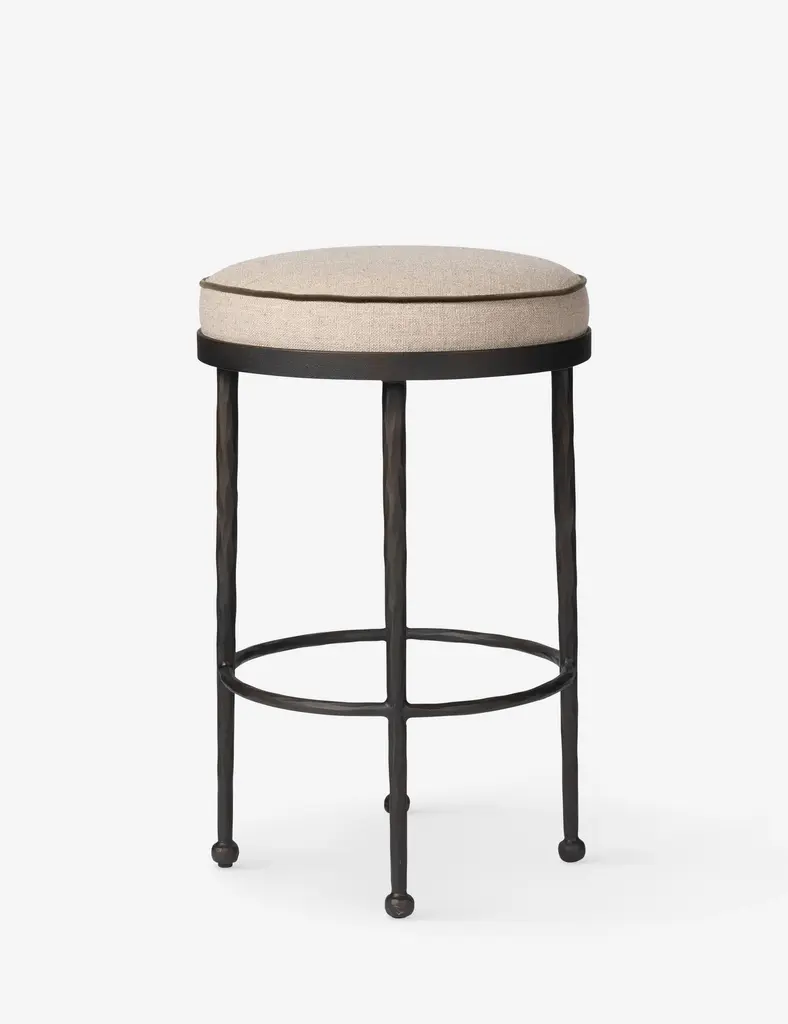 The Letlow counter stool brings a refined edge to your space with just the right touch of texture. A hammered iron base and rich upholstery nod to classic design, while the pared-back silhouette keeps it effortlessly modern. Available in counter or bar height, it brings elevated seating to kitchens, bars, and beyond.