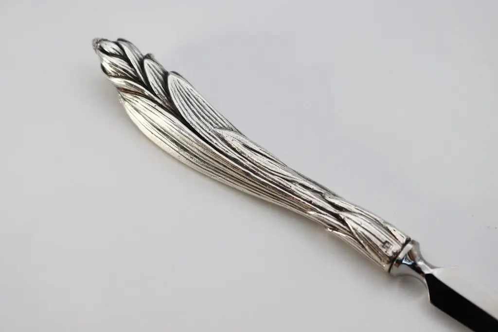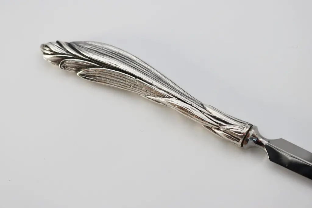 Letter opener in silver bronzeSilver plated bronze letter opener 35/42 microns Measures: L: 218 mm, weight: 118 grThis letter opener is the handmade work of French designer Richard Lauret.These pieces are unique OR made to order.The products can be personalised with customised engraving (price on quotation).In the same collection are presented service pieces, table accessories, individual covers.