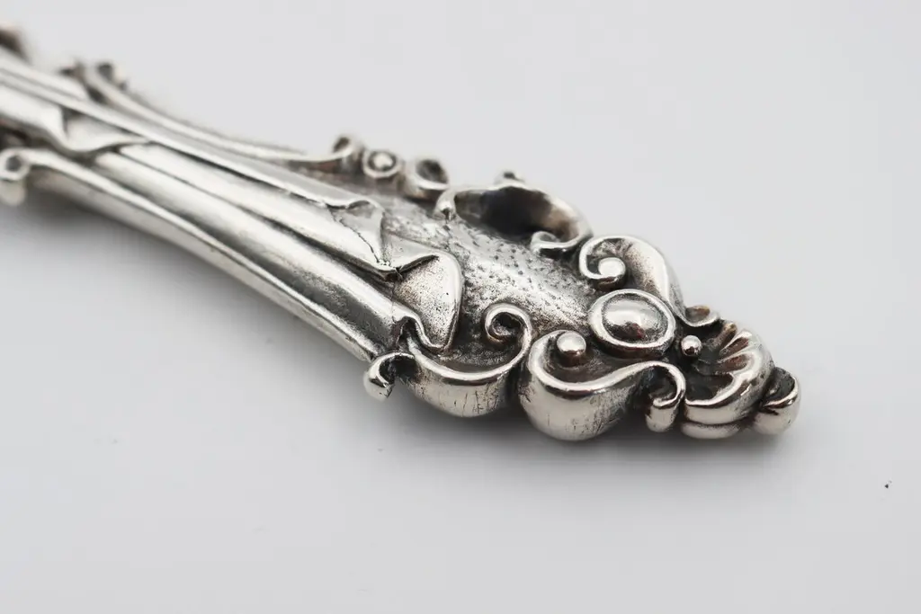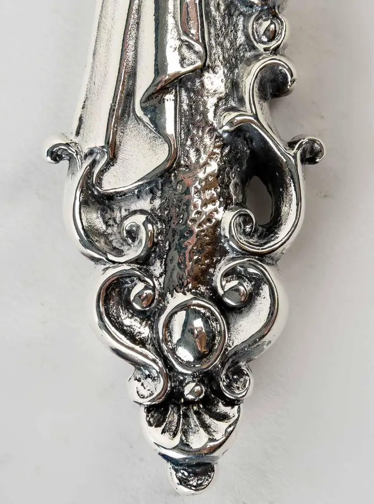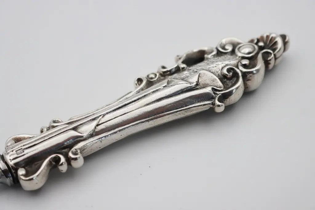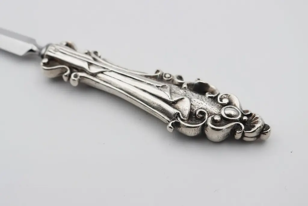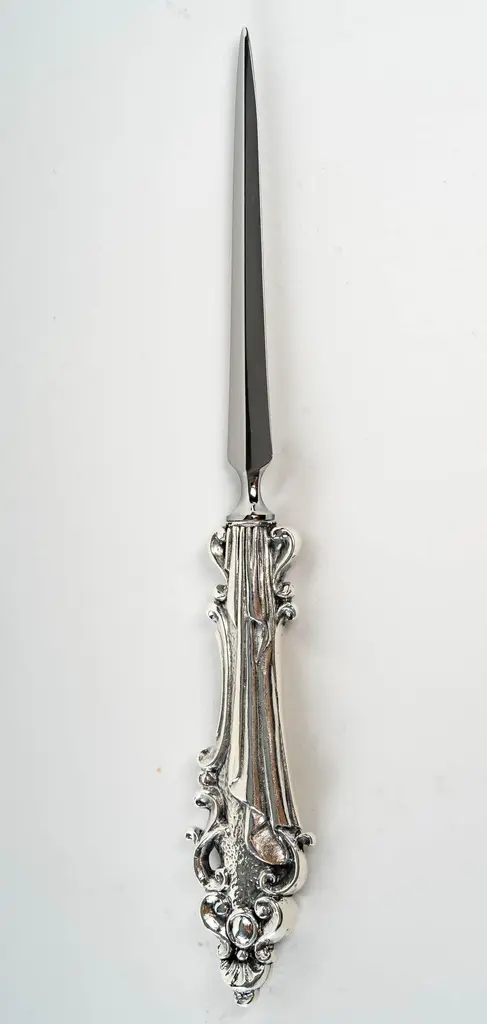 Letter opener in silver bronzeSilver plated bronze letter opener 35/42 microns Measures: L: 218 mm, weight: 118 grThis letter opener is the handmade work of French designer Richard Lauret.These pieces are unique OR made to order.The products can be personalised with customised engraving (price on quotation).In the same collection are presented service pieces, table accessories, individual covers.