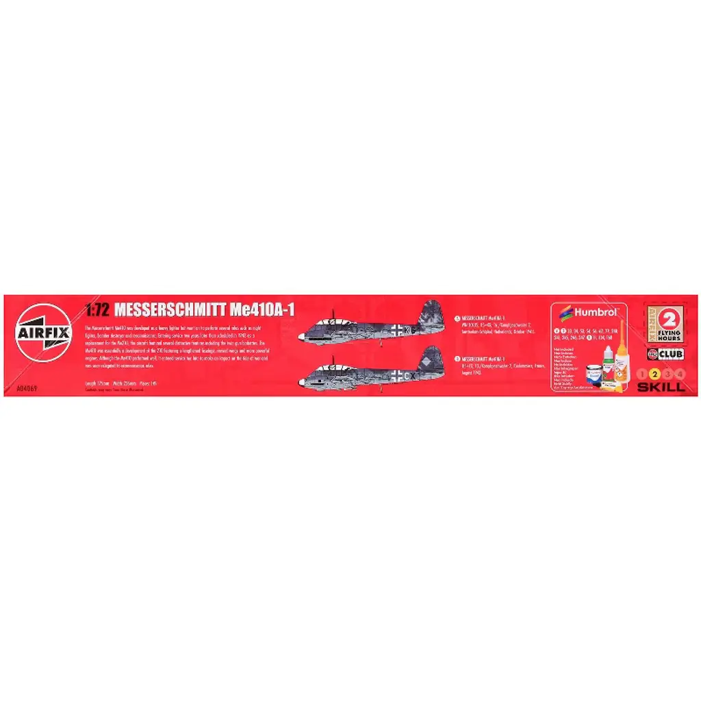 Level 2 Model Kit Messerschmitt Me410a-1 Fighter Aircraft With 2 Scheme Options 1/72 Plastic Model Kit By Airfix