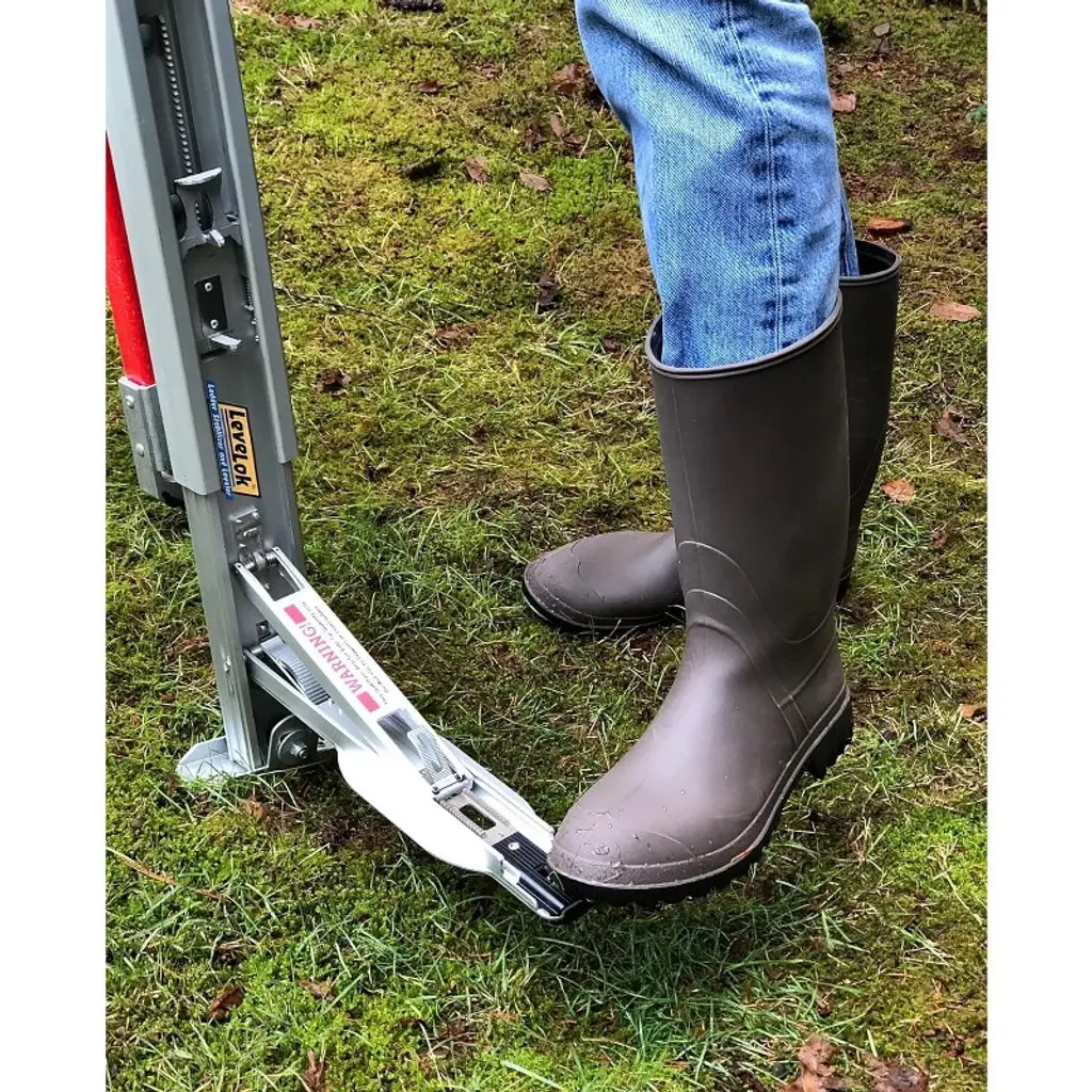 Introducing the first of its kind, LeveLok Supreme Extender, adding a whole new level of safety to your ladders. Easy access, touch-toe controls make the entire leveling / stabilizing procedure a snap. With 2 stabilizer arms deployed, the Supreme Extender’s stance is almost 3X the ladder stance, thereby adding substantial side-tip resistance and ultimately, a superior level of safety when climbing and working at heights. The Supreme Extender can be used effectively on steep slopes, up to a 25-degree angle. The Supreme Extender includes the same leveling legs as the original Levelok Leveling System, but with a totally new layer of safety built-into each unit for added confidence and a reduction of injuries. This product comes with the original, Levelok, fully automatic, backup safety lock which is instantly activated when the leveler is set in place. This safety feature was designed to help prevent accidental slipping or tripping of the locking mechanism and is part of all Levelok Leveling Systems, both permanent mount and quick connect style. This product is recommended for use on ladders with a rail thickness of no more than 1/2?, including but not limited to… 1.) Fiberglass Extension & Combination (Type 11, 1, 1A and 1AA), Fiberglass Step (Type 1A and 1AA), Fiberglass Double-Sided Step (Type 1A and 1AA) 2.) Aluminum Extension & Combination (Type 11, 1, 1A and 1AA), Aluminum Articulating (Type 1, 1A and 1AA)