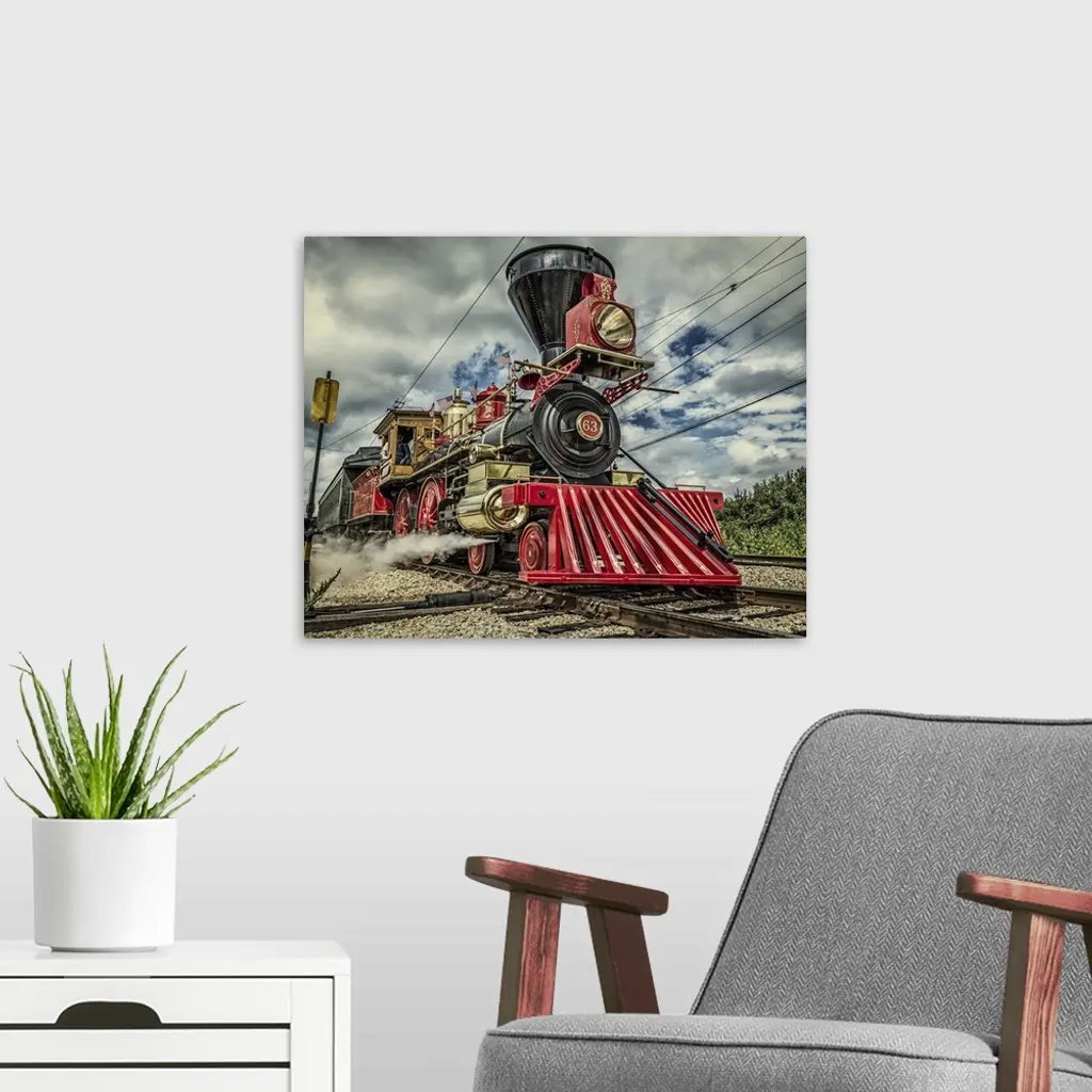 Leviathan 63 Steam Engine with red and black paintwork from 19th century in USA.