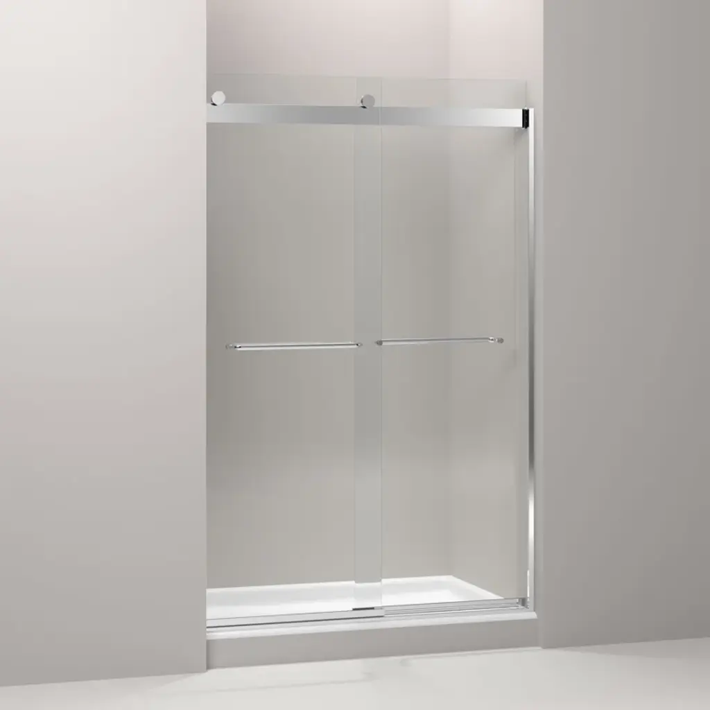 Bringing new technology and sleek style to the contemporary bath, Levity shower doors feature an innovative bypass system and roller design that provide an amazingly smooth, quiet sliding action for a difference you can feel. Levity’s unique design, including fully bypassable glass panels, makes installation easier than ever and allows for adjustability while the door is hanging. Gently curved towel bars accentuate the contemporary style of Levity shower doors.