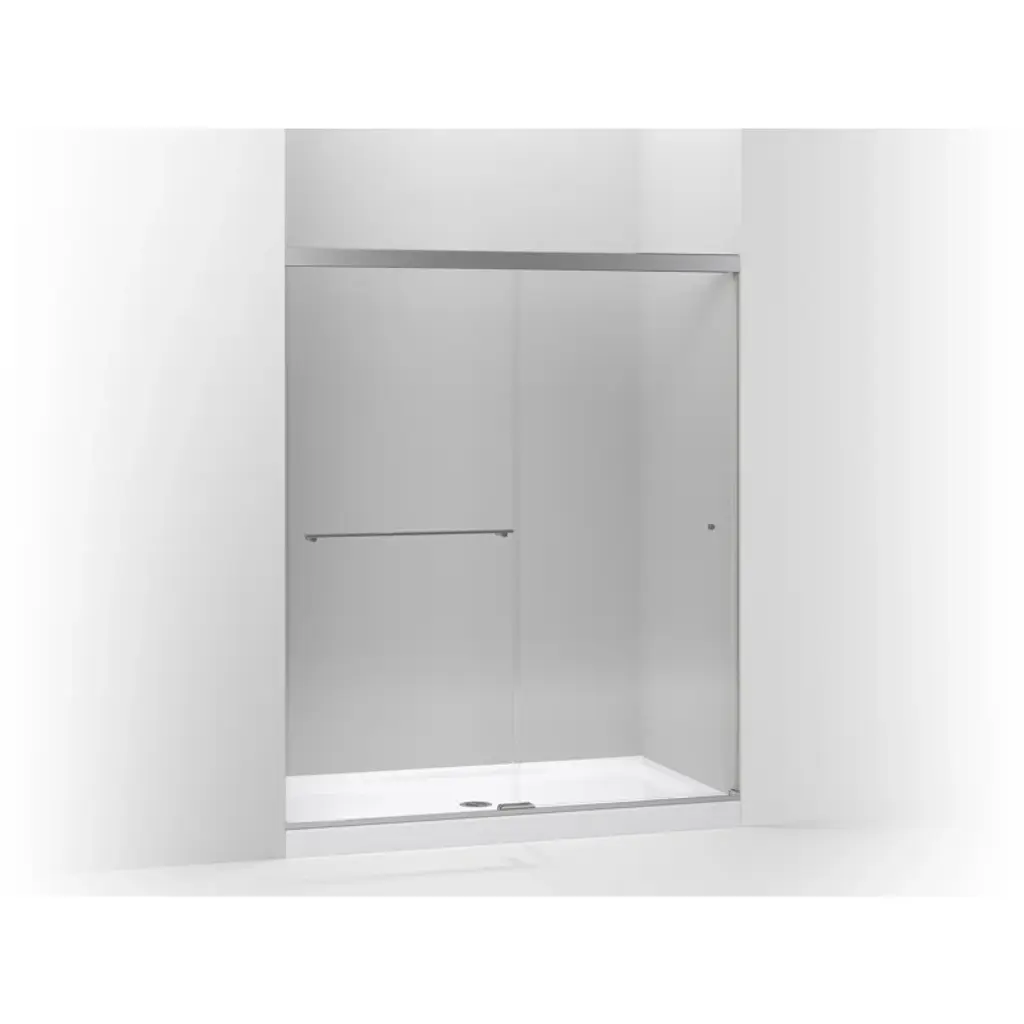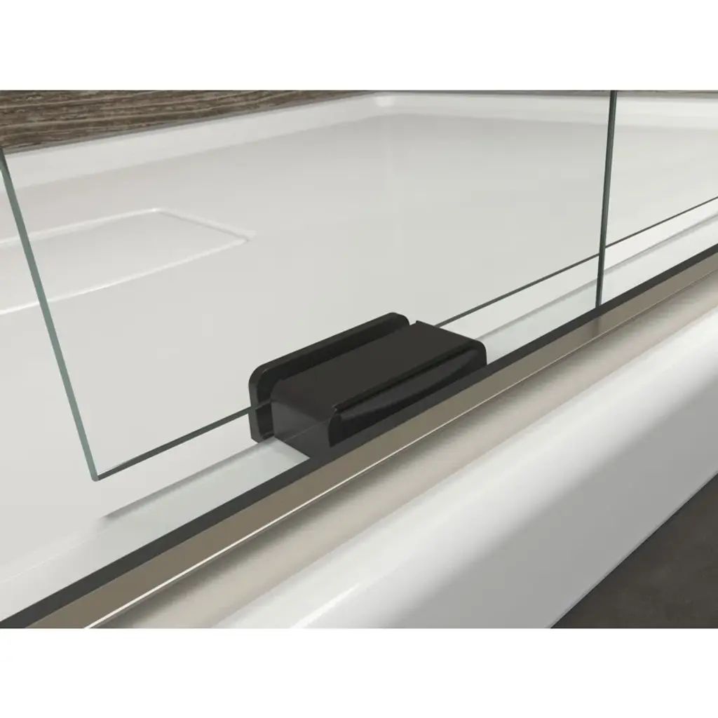 Bringing new technology and sleek style to the contemporary bath, Levity shower doors feature an innovative bypass system and roller design that provide an amazingly smooth, quiet sliding action for a difference you can feel. Levity’s unique design, including fully bypassable glass panels, makes installation easier than ever and allows for adjustability while the door is hanging. Vertical blade handles complement Levity's modern minimalist look, creating an open, inviting space for showering. Premium 3/8-inch-thick Crystal Clear glass offers a luxurious feel.
