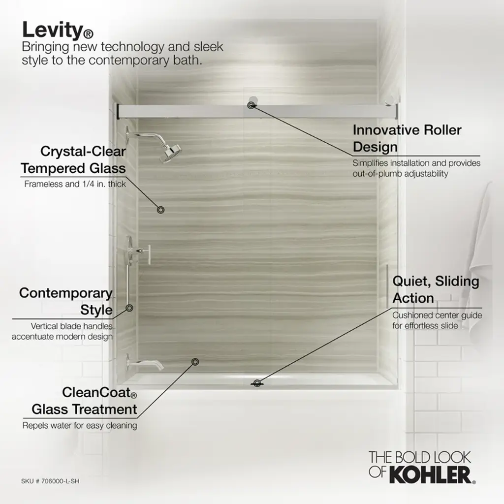 Bringing new technology and sleek style to the contemporary bath, Levity bath doors feature an innovative bypass system and roller design that provide an amazingly smooth, quiet sliding action for a difference you can feel. Levity’s unique design makes installation easier than ever and allows the door to be adjusted while hanging. Vertical blade handles complement Levity's modern minimalist look, creating an open, inviting space for bathing.