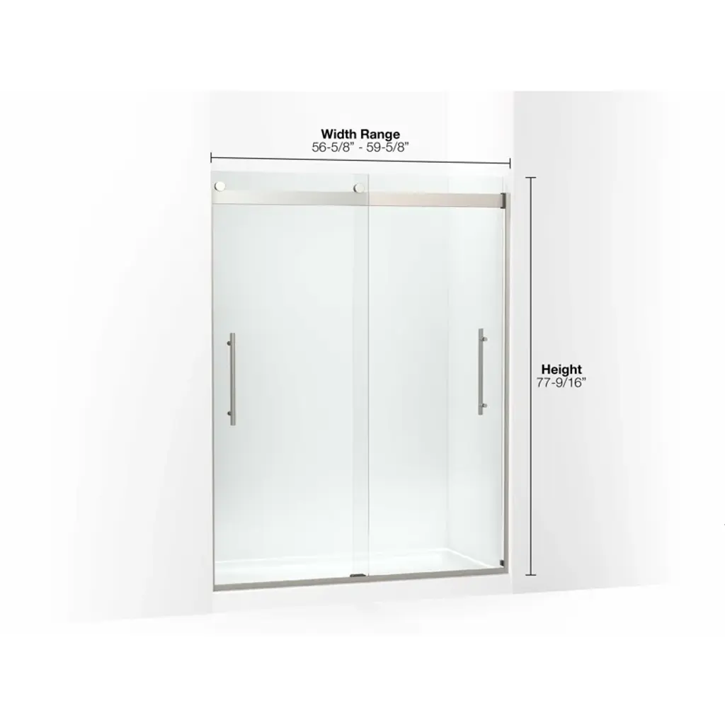 Levity Plus Frameless Sliding Shower Door, 77-9/16 In. H X 56-5/8 - 59-5/8 In. W, With 5/16 In.-Thick Crystal Clear Glass