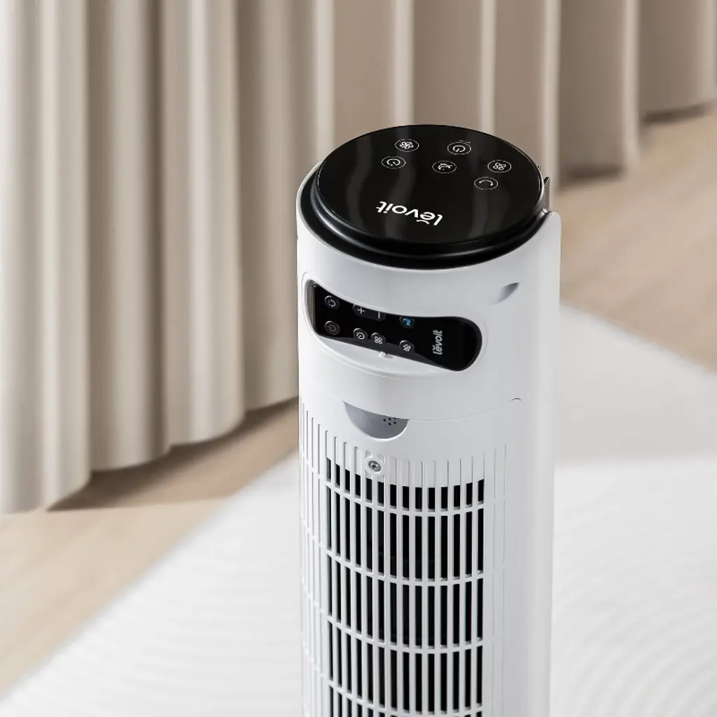 Hit refresh on hot days and nights with the Levoit Classic 42-Inch Smart Tower Fan. With the convenient remote control, you can change fan speeds and control settings from across the room. On your way home and want to get the air flowing? Use smart control through the VeSync app to control settings from anywhere. You can also connect to third-party voice assistants for when you need hands-free control! When you turn on the Advanced Sleep Mode feature, the tower fan will adjust the fan speed according to room temperature, providing you with a refreshing breeze all night long. Enjoy wide coverage with 90° oscillation and an angle adjuster that allows you to customize the angle of the breeze. When it’s time for maintenance, the removeable back cover makes cleaning easy.