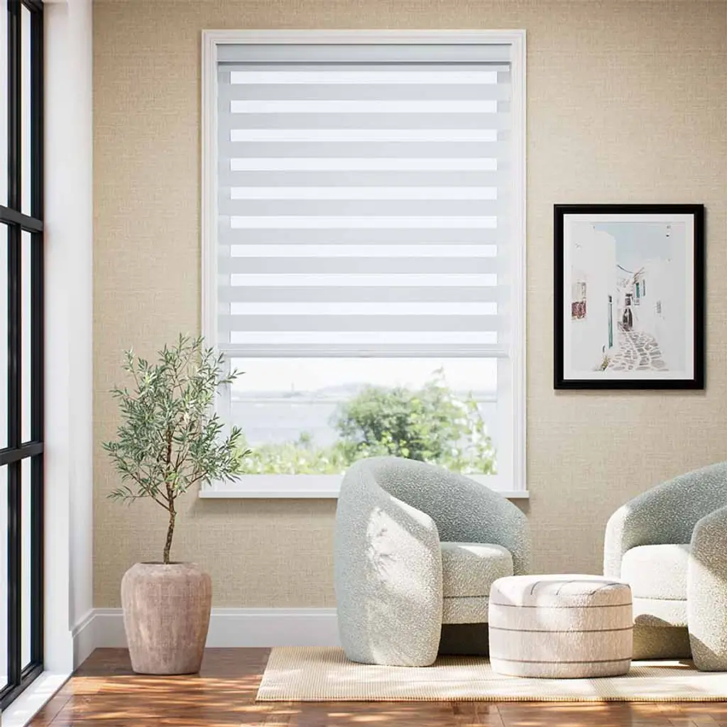 LEVOLOR Light Filtering Zebra Shades – Stylish Privacy & Soft Natural Light Transform your windows with LEVOLOR Light Filtering Zebra Shades from Select Blinds, perfectly blending modern design and adjustable light control. These zebra shades alternate sheer and opaque fabric bands, allowing you to enjoy softly diffused daylight or enhanced privacy with just a simple shift of the shade. Available in a range of classic neutrals, trendy prints, and refined textures, you can easily find the ideal color and pattern to complement any room.