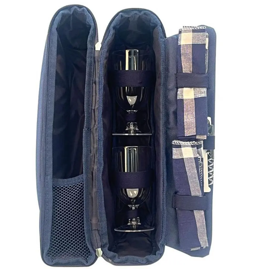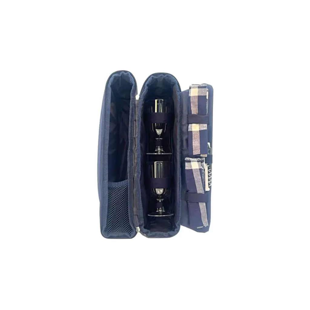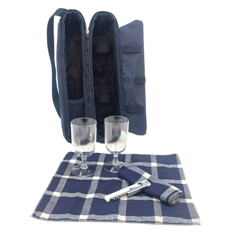 Single zipper and pocket for you to store most of your beverage necessities. Travel with this beverage tote and enjoy fine drinks everywhere you go. Comes with 2 plastic beverage glasses securely inside the compartment. A bottle opener with plastic handle. You will find two cute handkerchiefs inside. Handles for you to easily carry your beverage tote bag.
