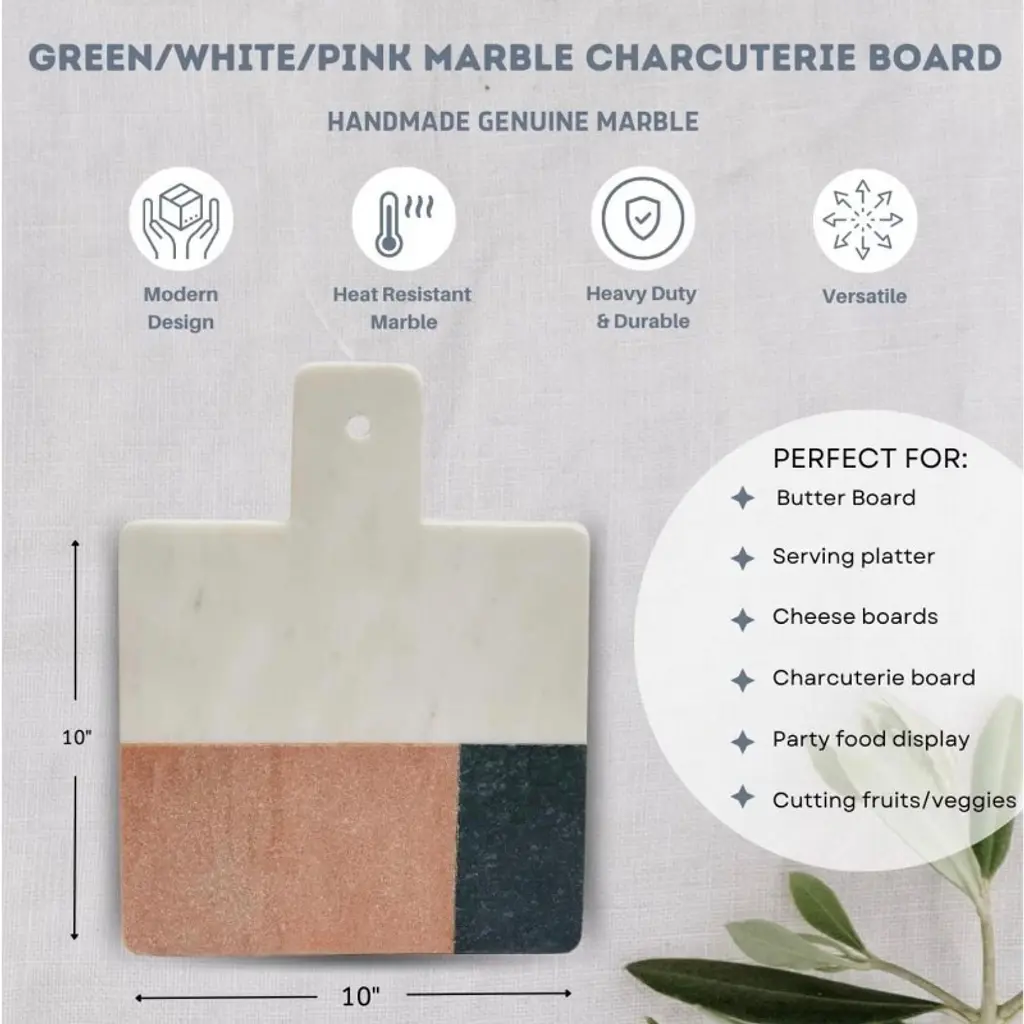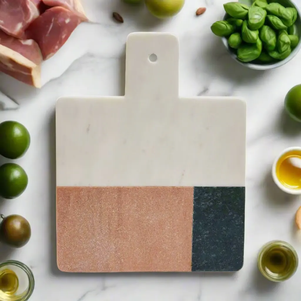 Lexi Home Marble 11.5" X 9" Square 3-tone Marble Charcuterie Board