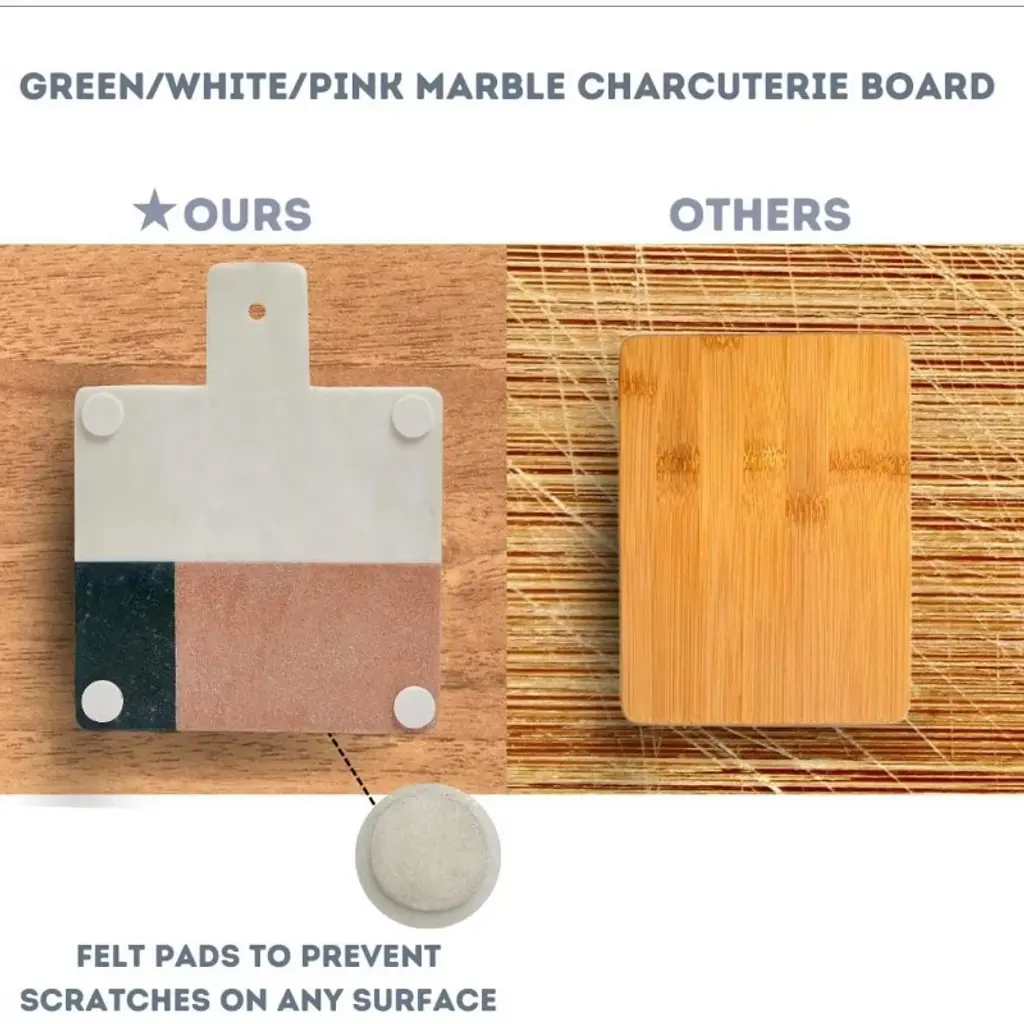 Polish up the presentation of any charcuterie board display with the charcuterie marble board. The collection contains a variety of black and white marble slab inspired cutting boards that double up as a cutting board. Perfect for any intimate event or festivity that requires food preparation. Since the marble material contains a natural cooling effect, you can easily maintain the cooling feature by placing it in the fridge a few hours before an event. Therefore, the marble boards may also feature wood accents which can compliment any pastry like cakes, cheese, pickled foods, candy, or any gourmet treats. The featured non-slip rubber feet secures the marble display from moving and guarantees to be a thoughtful addition to any festivity.