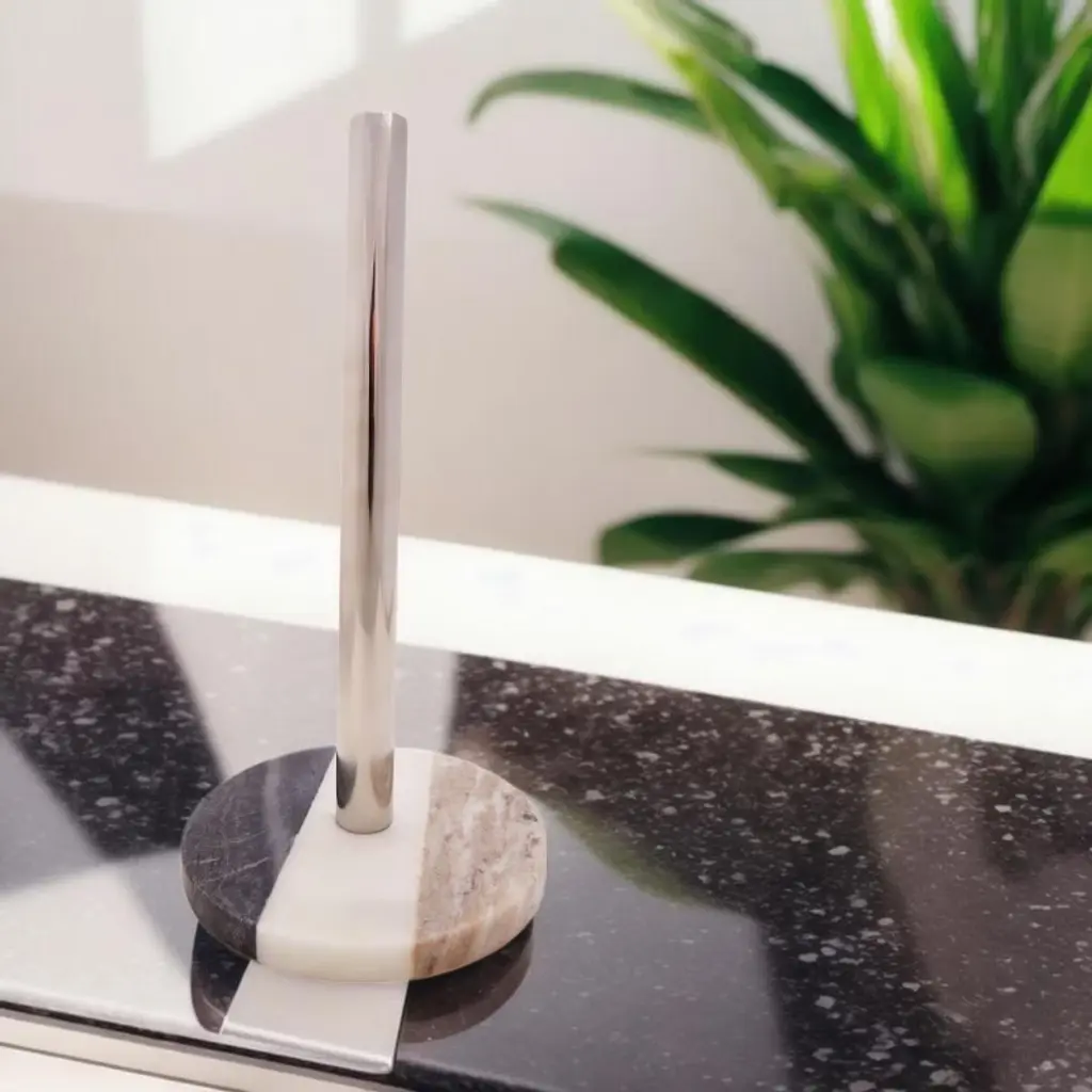 Both sturdy and durable, the marble paper towel holders are versatile yet complimenting. Get rid of the basic wooden or plastic paper towel holders. The heat-resistant and reusable paper towel holder ensures accessibility to the disposable towels. Allowing for effective single tears to occur when using the paper towel holders. Each towel rack holder comes with a balanced weighted base that prevents the towel decor holder from tipping over or the disposable towels from unraveling. The versatility of the towel holder makes for a great addition to any kitchen, garage, bathroom, or guest room.