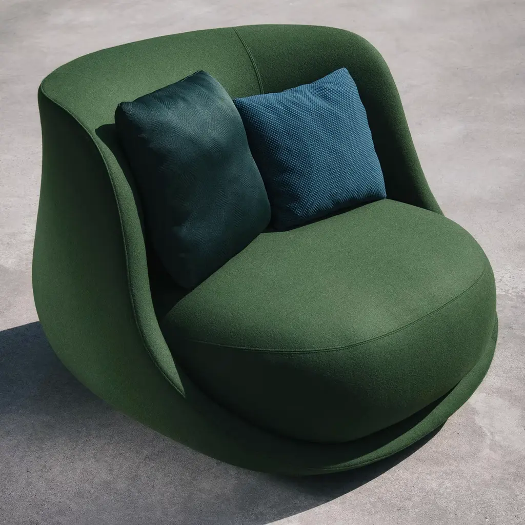 Liaison is the story of a bold shape, a shell designed to shelter a soft seating cocoon. With generous proportions and an inviting look, ‘Liaison’ can count on the support of a welldefined, meticulously designed and distinctly curvy outer envelope. Built upon a thin metal base, Liaison’s legless design inspires new ways to sit and lounge in residential and hospitality environments. Cushions not included, please ask the Concierge for quotation.