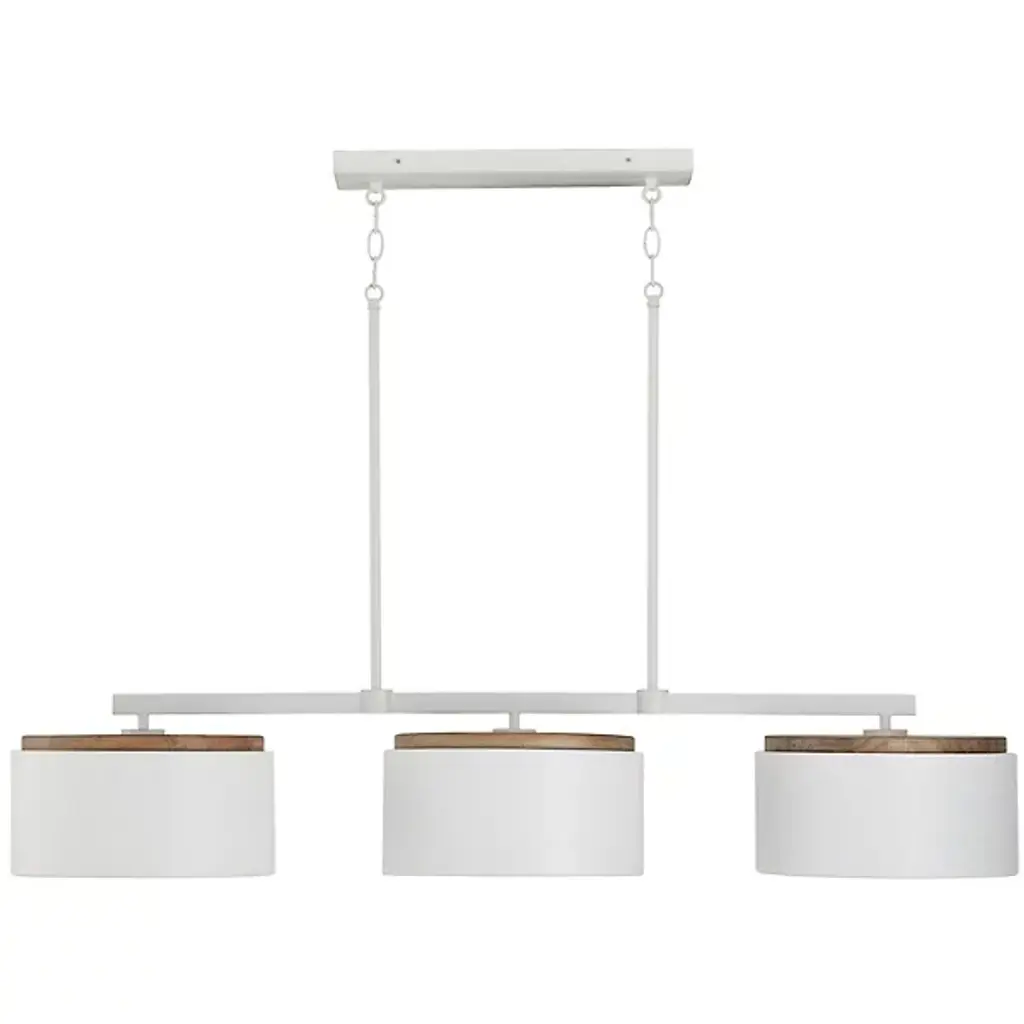 The Liam Linear Suspension from Capital Lighting combines mango wood and contemporary design. This fixture features Matte White metal shades and Light Wood details, establishing a visual equilibrium that embodies the natural Scandinavian style. The combination of modern aesthetics and organic elements makes this chandelier a statement piece, providing both illumination and an artistic focal point. Illuminate your space with this linear suspension, where sleek design and natural textures harmonize for a compelling and sophisticated lighting experience.