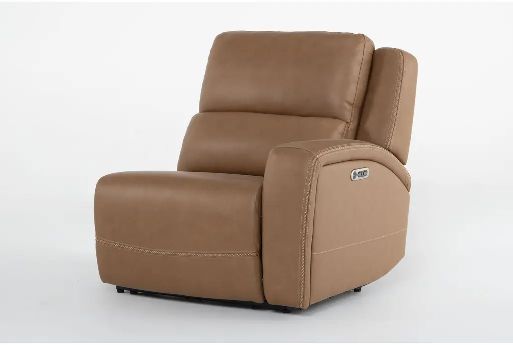 Made exclusively for Living Spaces by Flexsteel, our Liam leather zero gravity right arm facing power recliner offers the gold standard of lounging with premium materials and construction that equate to an unparalleled experience. This modular component can be arranged in an array of configurations to fit your space and needs. Built to last with Flexsteel's patented Blue Steel Spring™ seat system, the design offers a level of support and durability that is further enhanced by a seat cushion featuring memory foam. Top grain leather seating also promises luxurious coverage and style. With power reclining and a power headrest, you can adjust to a variety of positions, including zero gravity, which relieves pressure and promotes better circulation, among many health benefits. USB charging adds convenience.