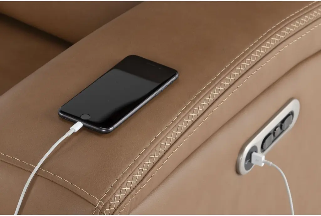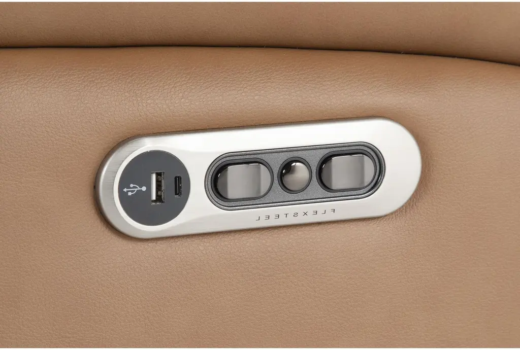 Liam Saddle Brown Leather Flexsteel Right Arm Facing Power Zero Gravity Recliner With Power Headrest & Usb