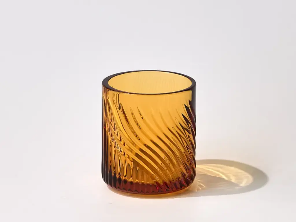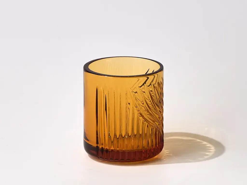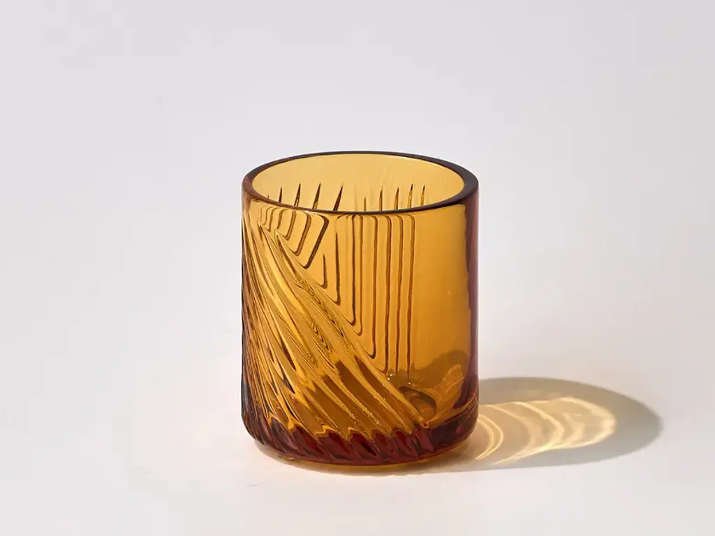 LIBECCIO is a hand-blown glass tumbler.A unique piece that enriches the table. This lead crystal glass, blown and engraved by hand, is the result of artisanal art that enhances every detail. Its decorations, made manually, create plays of light that enhance the transparency and purity of the crystal. Perfect for transforming every moment at the table into an elegant and refined experience.Featureshand-blown and shaped in Italycolor: amber or transparentmaterial: pure lead crystal glassavailable, upon request, in the size: Ø 9 x H 10 cm