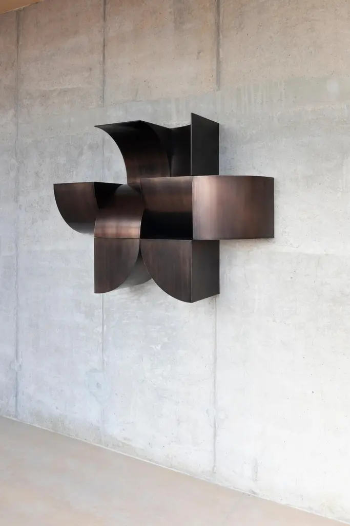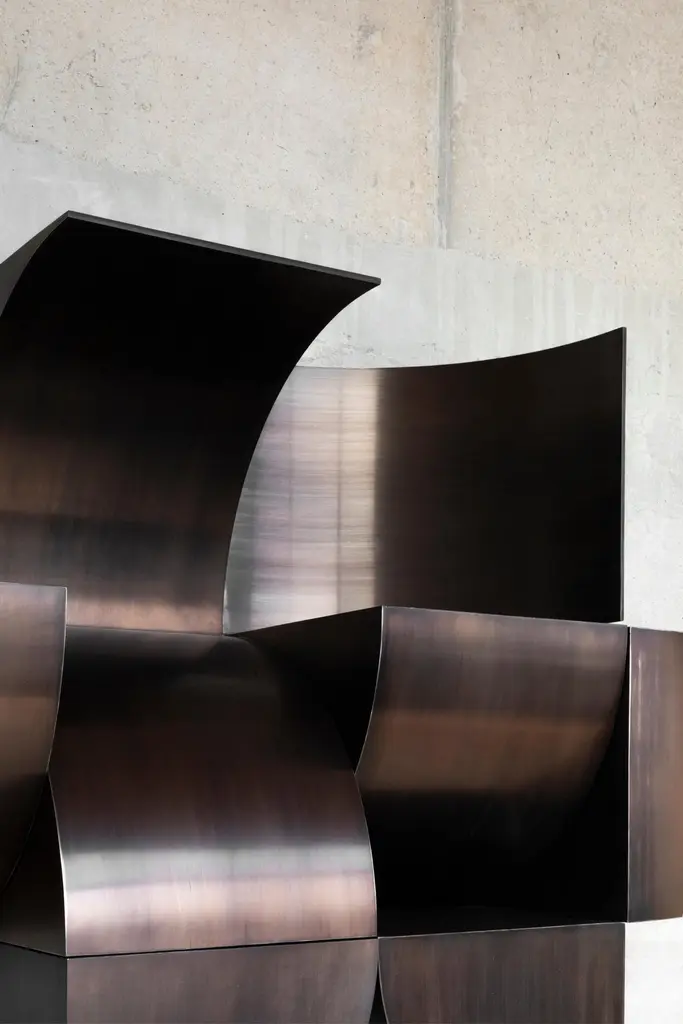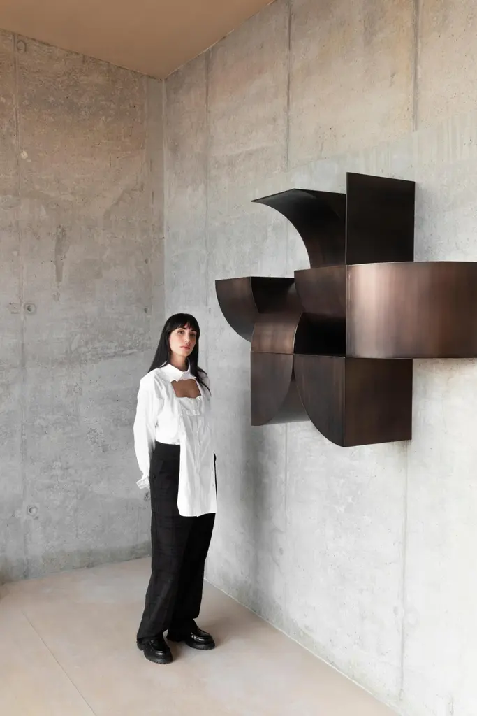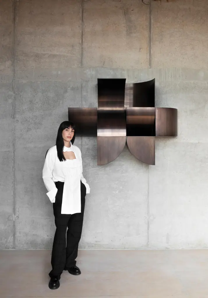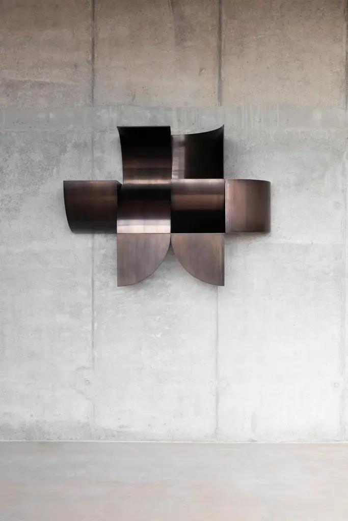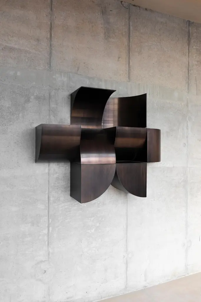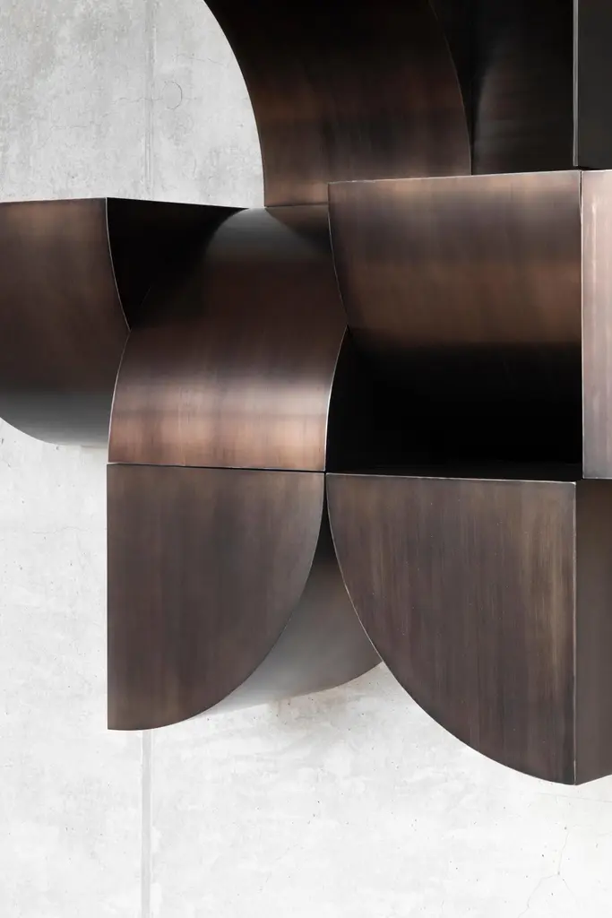 Librero Duna 2 by Eliana PortillaDimensions: D 35 x W 140 x H 105 cm.Materials: Steel with brass coat.This shelf is made of eight modular pieces. Please contact us.Eliana Portilla inspires in the patterns and behavior habits that are present in everyday society and as an individual.Considering repetition and rhythm as a resource extracted from these patterns to understand and analyze its origin by using geometric abstraction as a form of language.Her work aspires to satisfy the need for balance and equilibrium in her compositions as a tool to communicate and express abstract language. Clung to a specific process developed by her, she uses a platform, space or format to decompose form and shapes that offer the beginning of infinite possibilities in a geometric play. ̈SHELF DUNA ̈ is born from this game of abstraction and repetition of a shape and the void it generates when it reaches volume. The modules allow you to generate different compositions depending on the direction or face you choose as the unity of the pieces as a one.