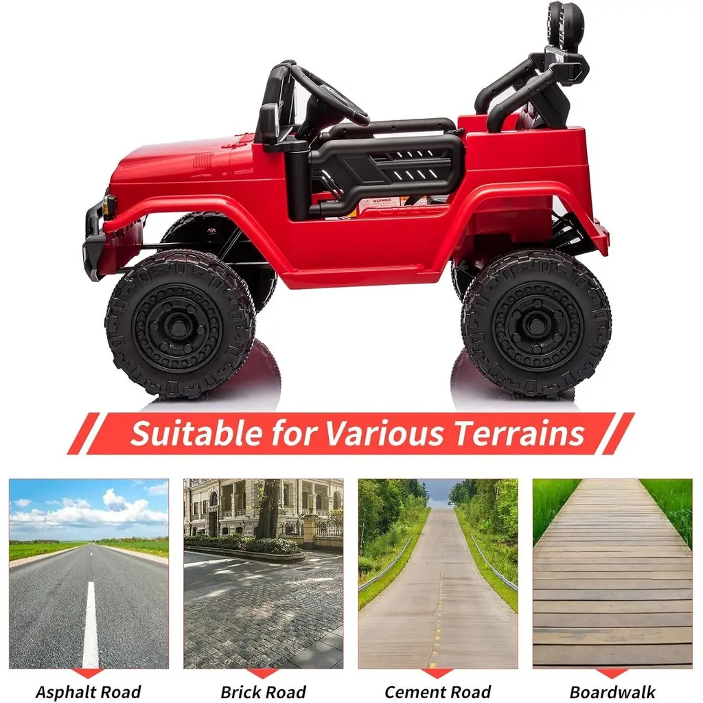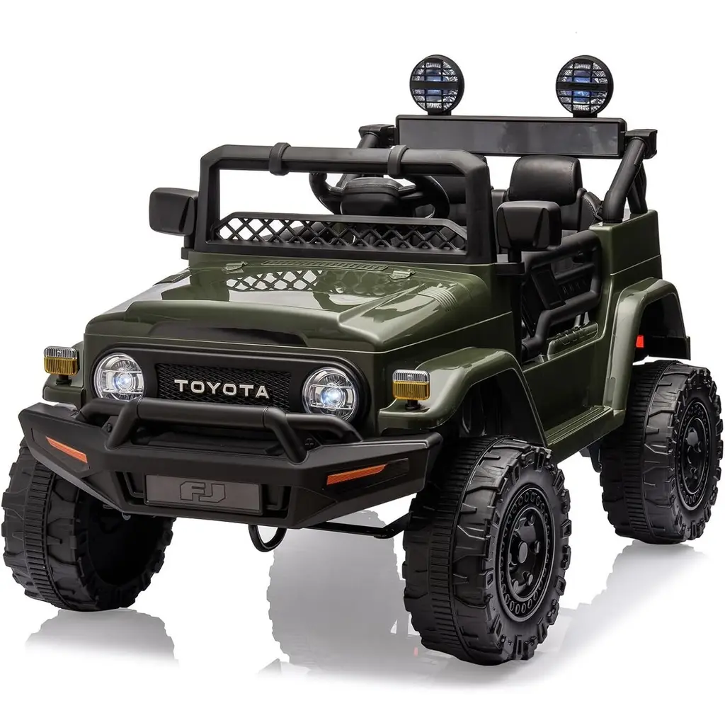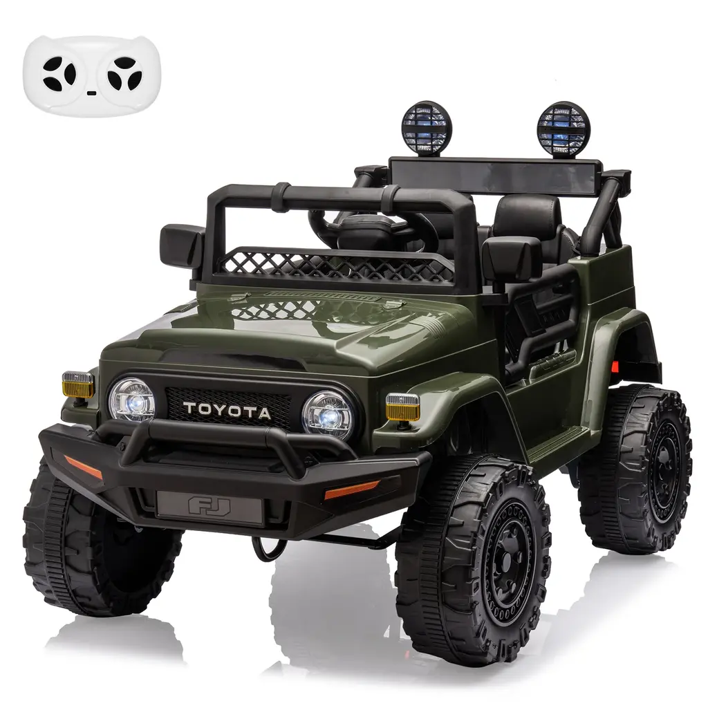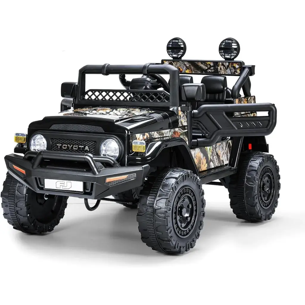 Powerful Performance----With a 12V 7AH rechargeable battery, this electric car allows kids to drive smoothly on various terrains like grass, gravel, and gentle inclines. Stylish Design----This licensed Toyota ride-on truck features realistic LED lights, wear-resistant EVA wheels, an MP3 player, and a flash drive port, along with fully opening doors for an authentic driving experience. Dual Driving Modes----Kids can drive using the foot pedal and steering wheel, or parents can control the car with a 2.4G remote that offers forward, reverse, and park options. Perfect Gift for Children----Measuring 38.6" x 25.6" x 26.6" and supporting up to 66lbs, this ride-on car features a roomy seat for added comfort, making it an ideal gift for children aged 3 and above. Safe & Durable----Made from sturdy materials meeting all child safety standards, this car has passed CPSIA, CPC, and ASTM-F963 certifications, ensuring a safe playtime experience.