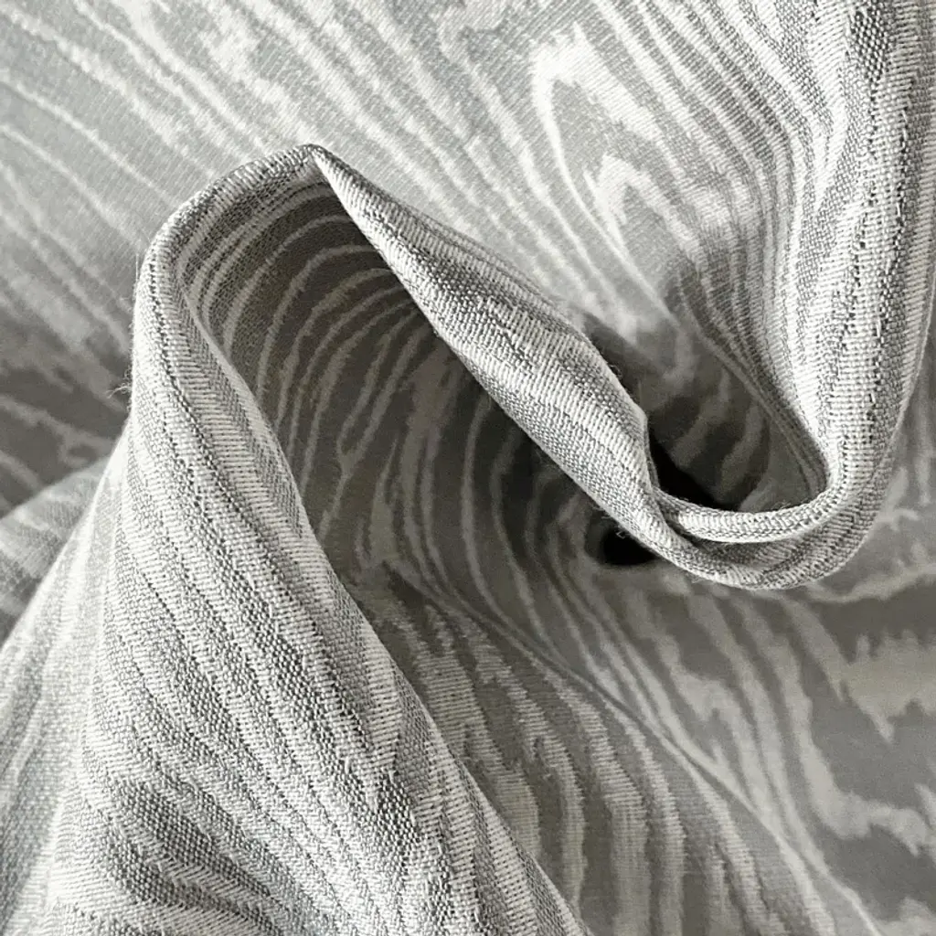 Luxury fabric in neutral silver faux bois print. Available for yardage and upholstery.